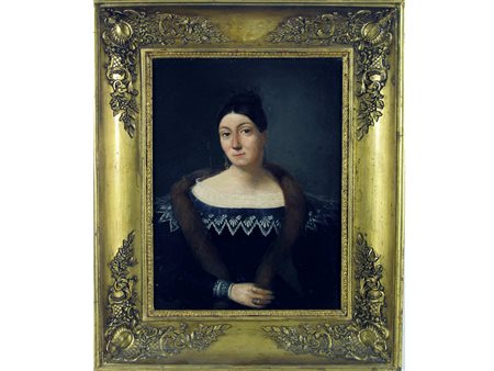 Anonimo (XIX secolo) Ritratto di gentildonna Olio su tela Misura 32x24 cm Con cornice coeva