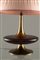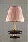 Brass table lamp with pink silk shade. '50s