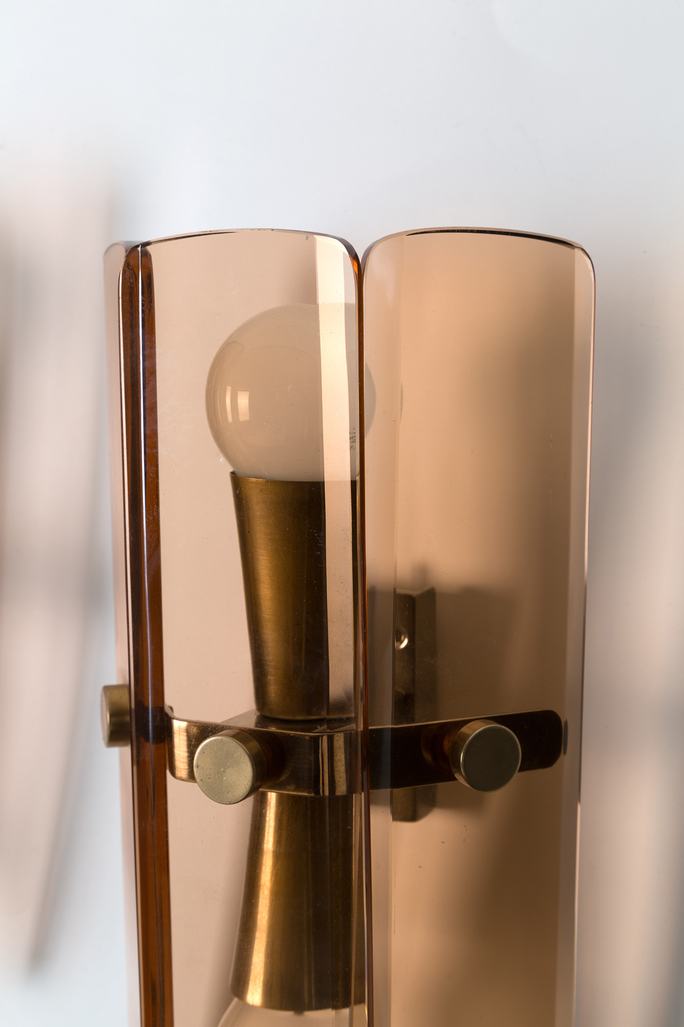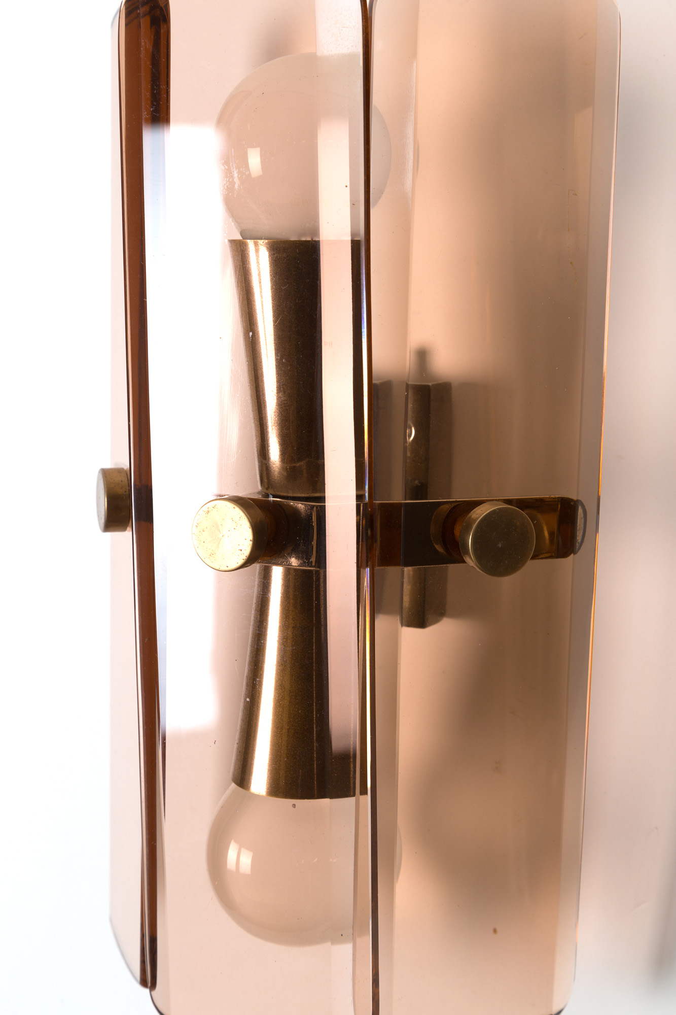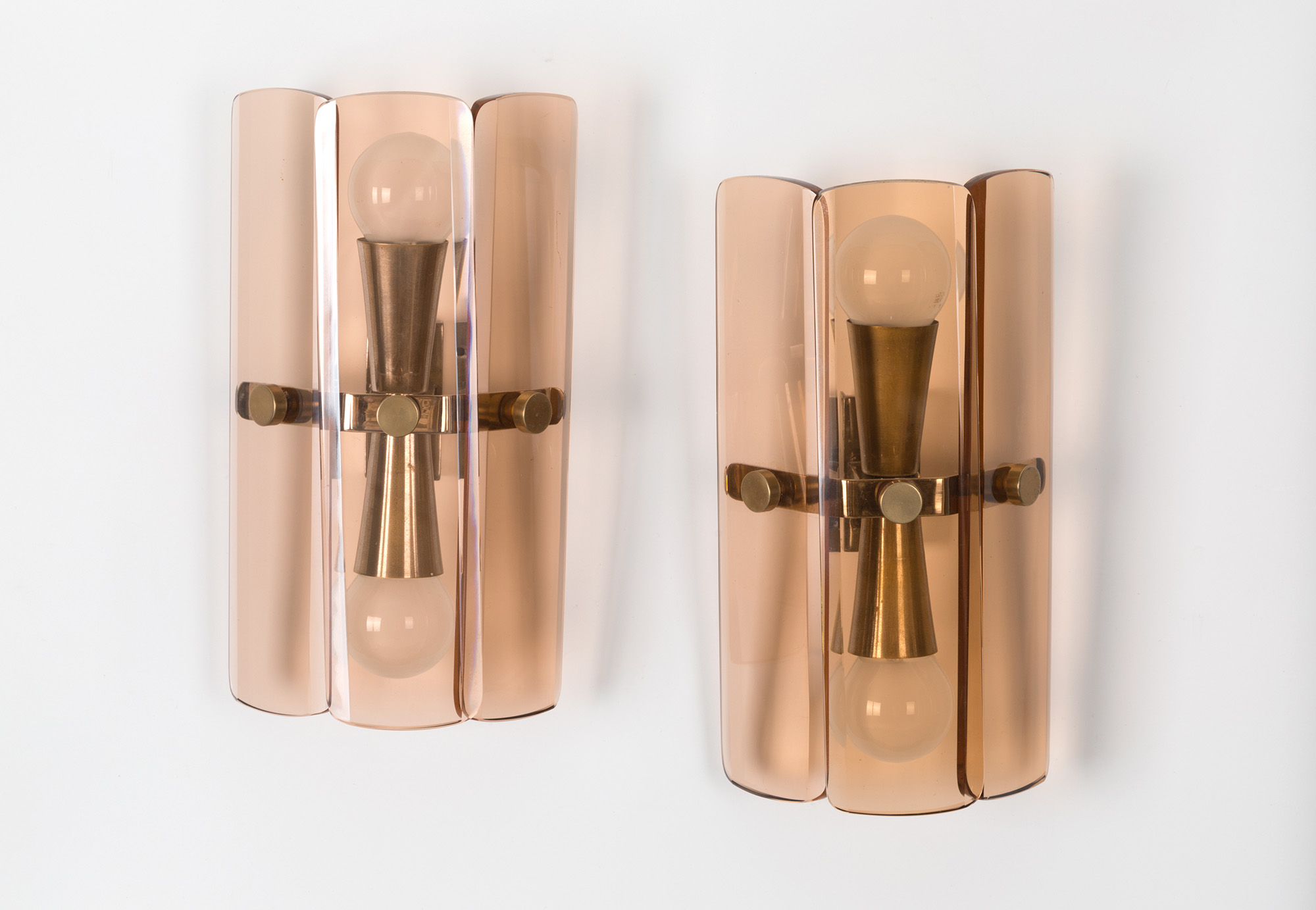 FONTANA ARTE. Two sconces in pink glass. '50s