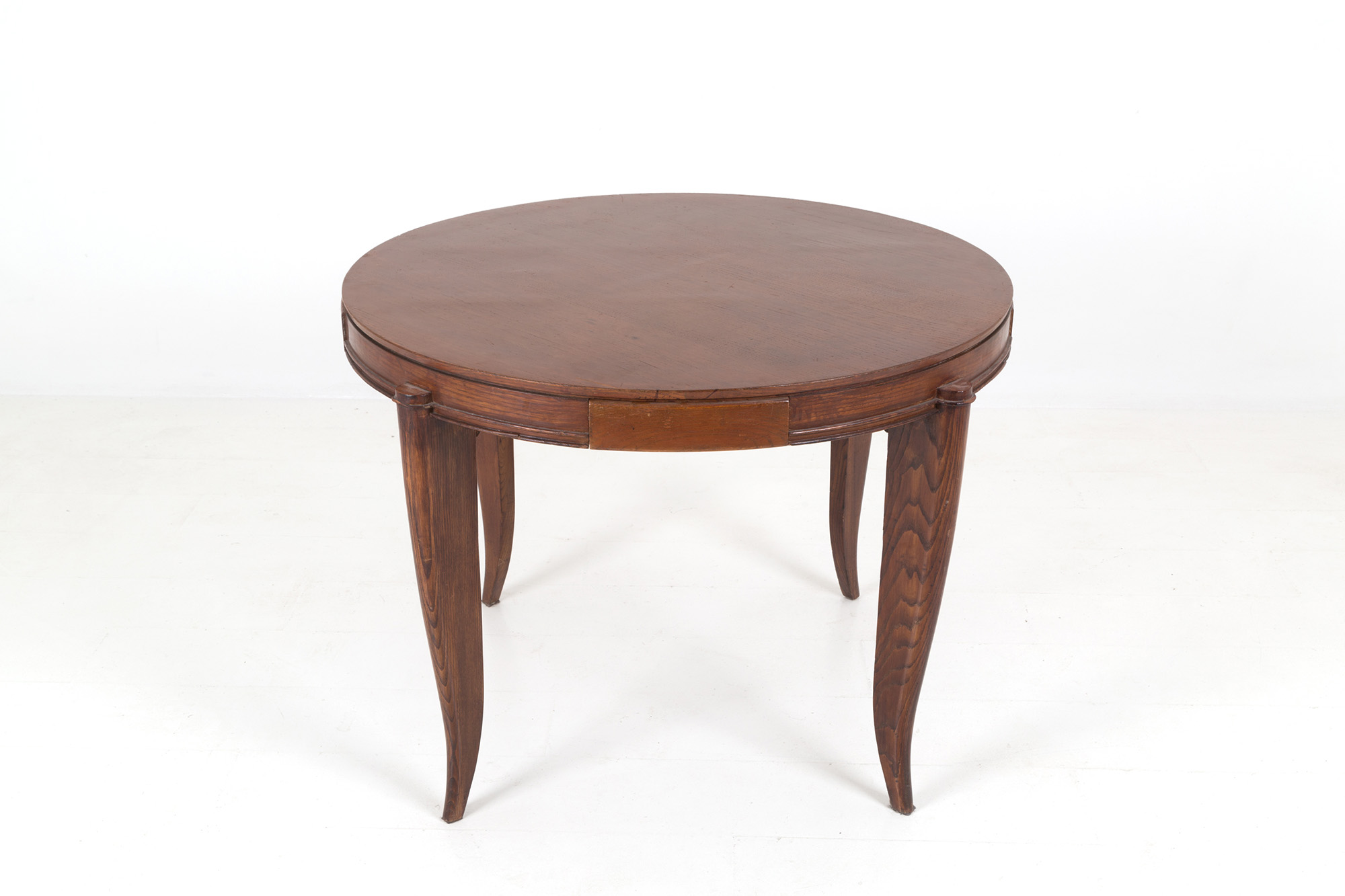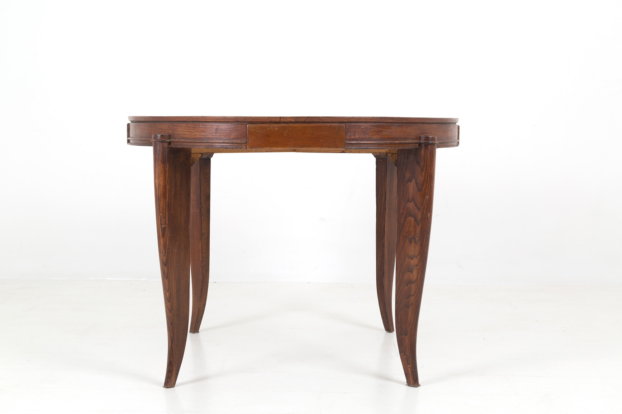 GIO PONTI (Milano, 1891-1979) e EMILIO LANCIA (Milano, 1890 - Besozzo, 1973), Attr. Tavolo in legno di noce. Anni '30. Difetti. Mis. Alt. cm. 76 Diam. cm. 100 ca.