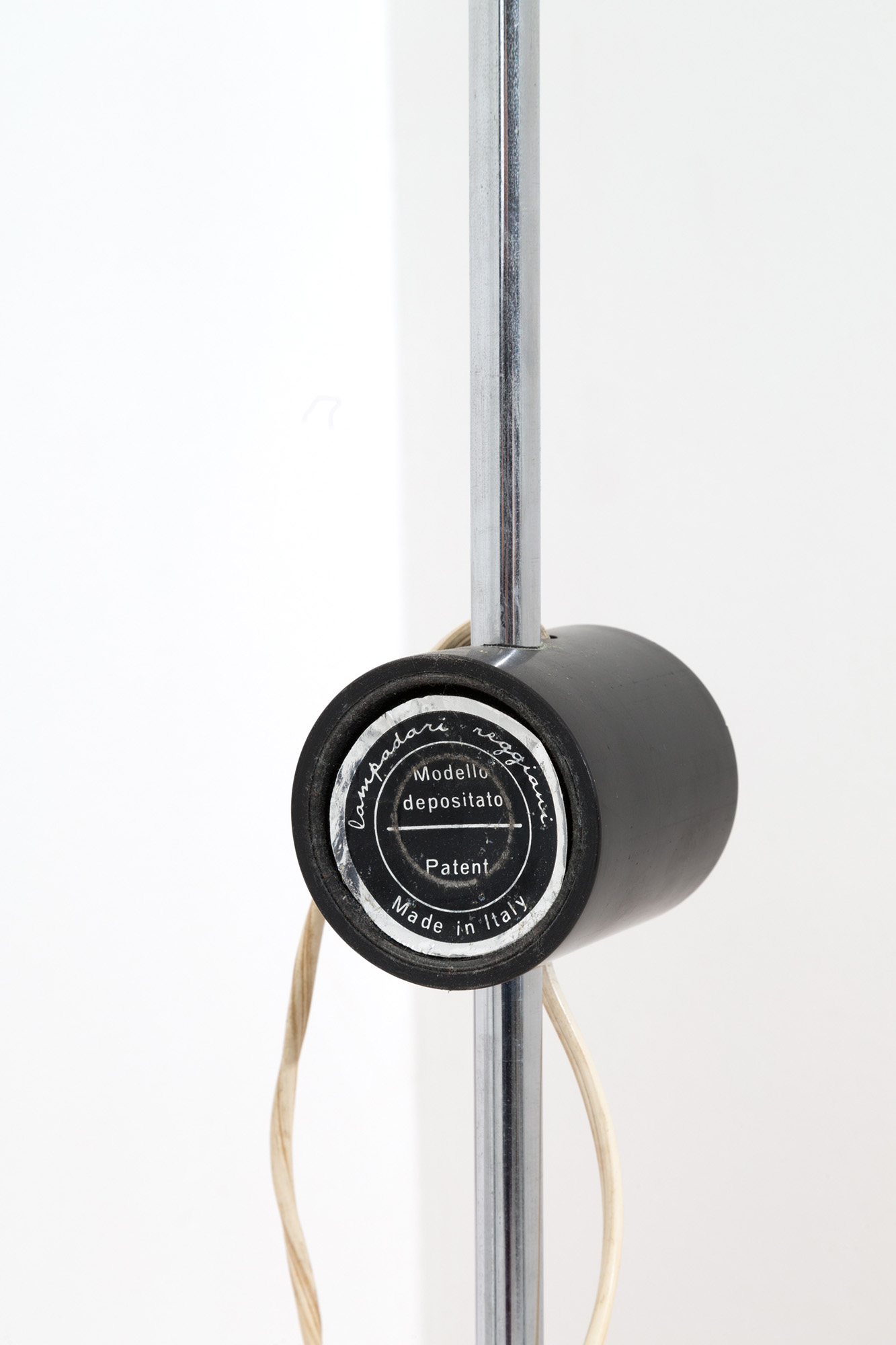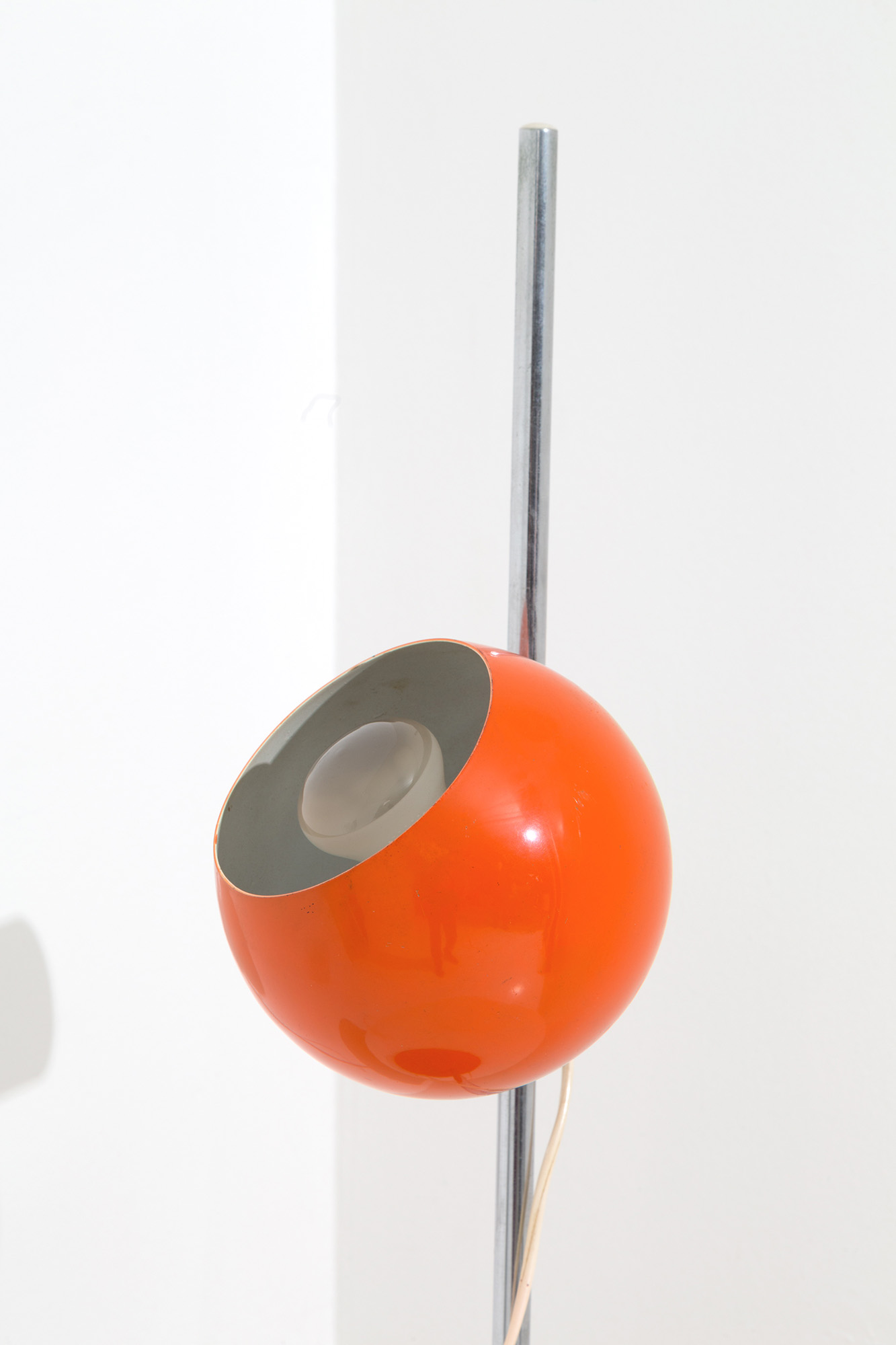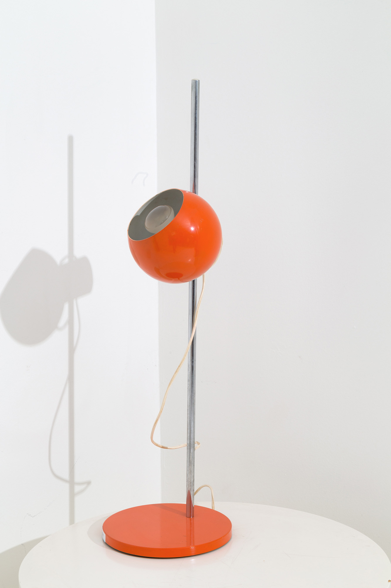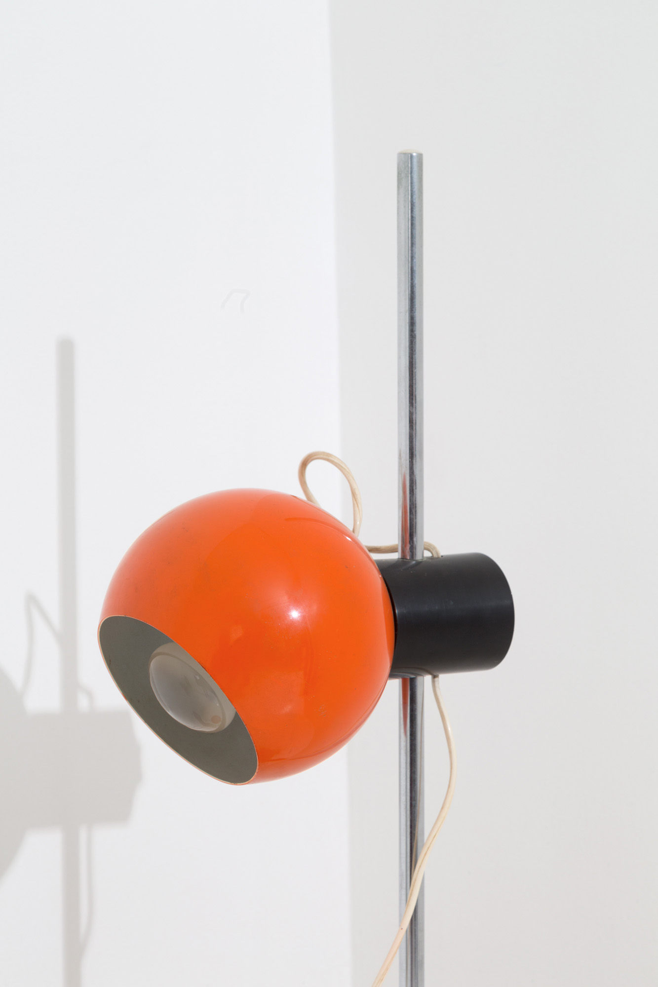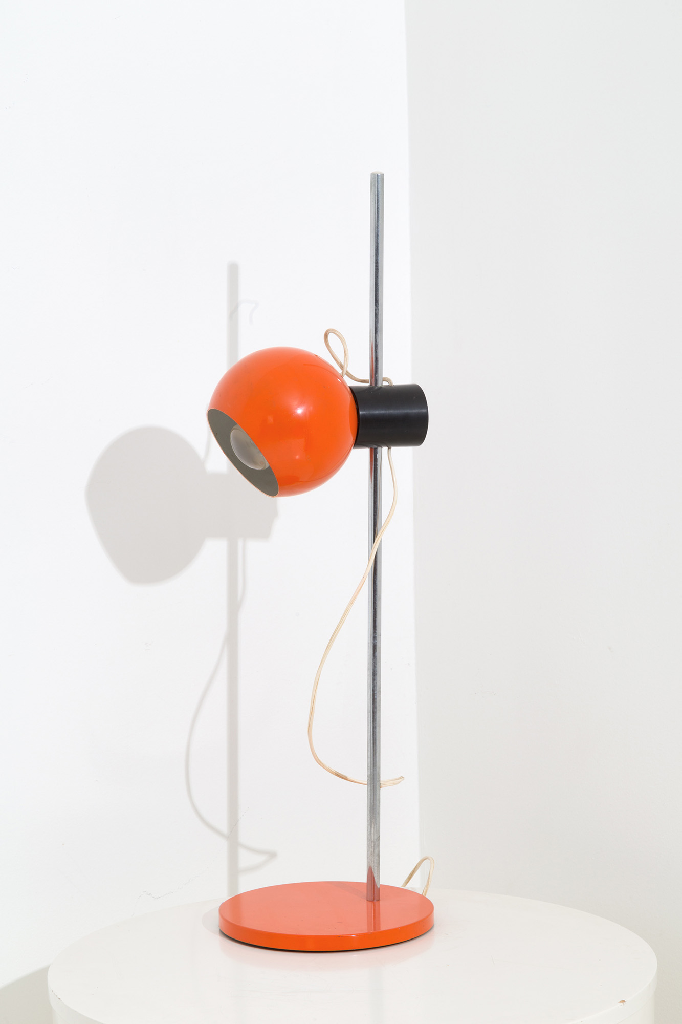 Lampada da tavolo in metallo verniciato e cromato arancione e nero. Manifattura REGGIANI. Con etichetta originale. Anni '60. Mis. Alt. cm. 72 Diam. cm. 21 ca.