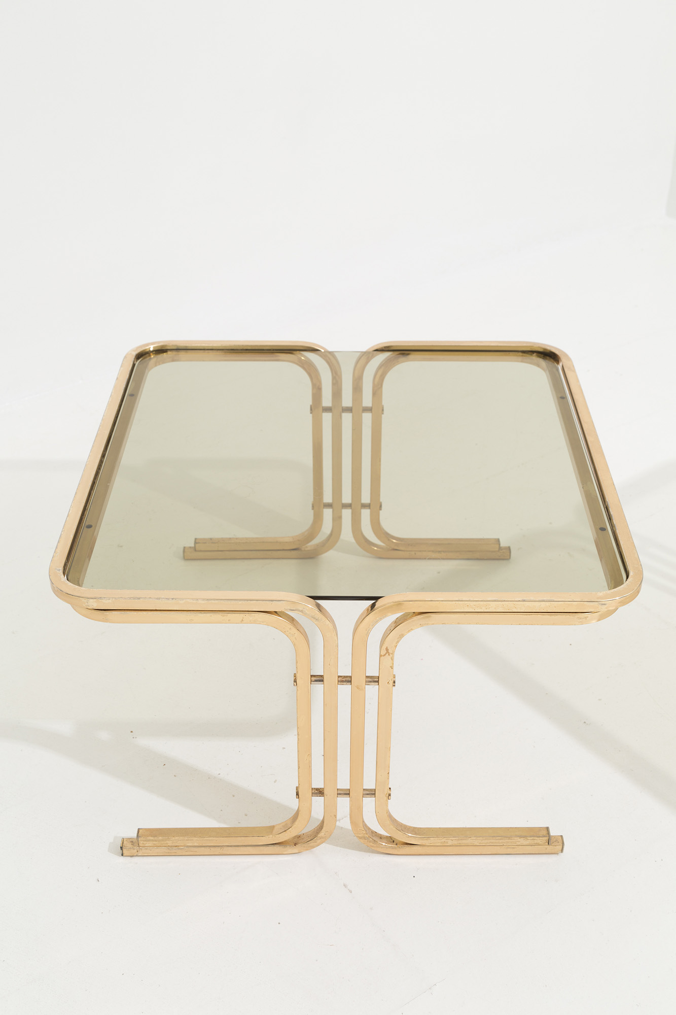 Three brass coffee table with smoked glass top
