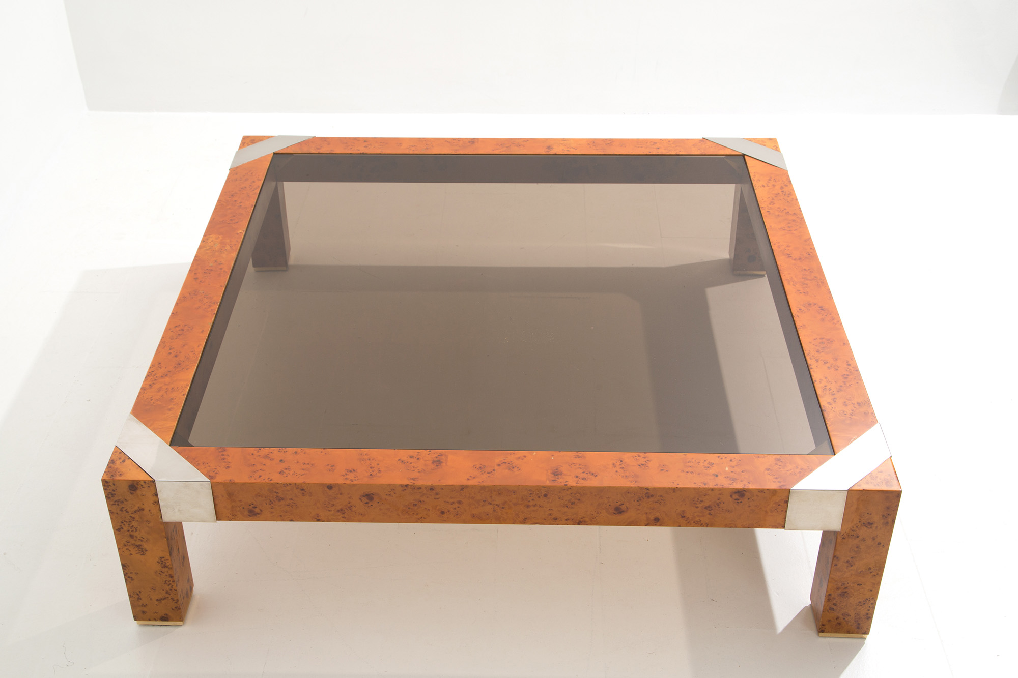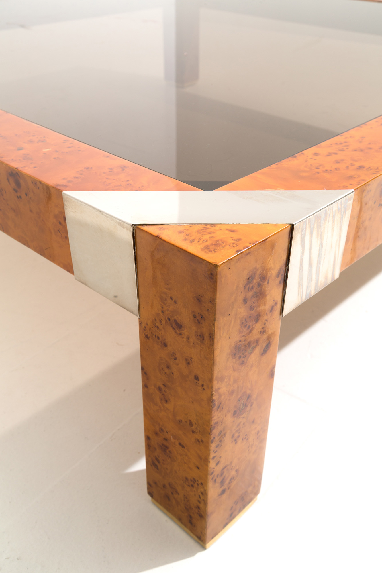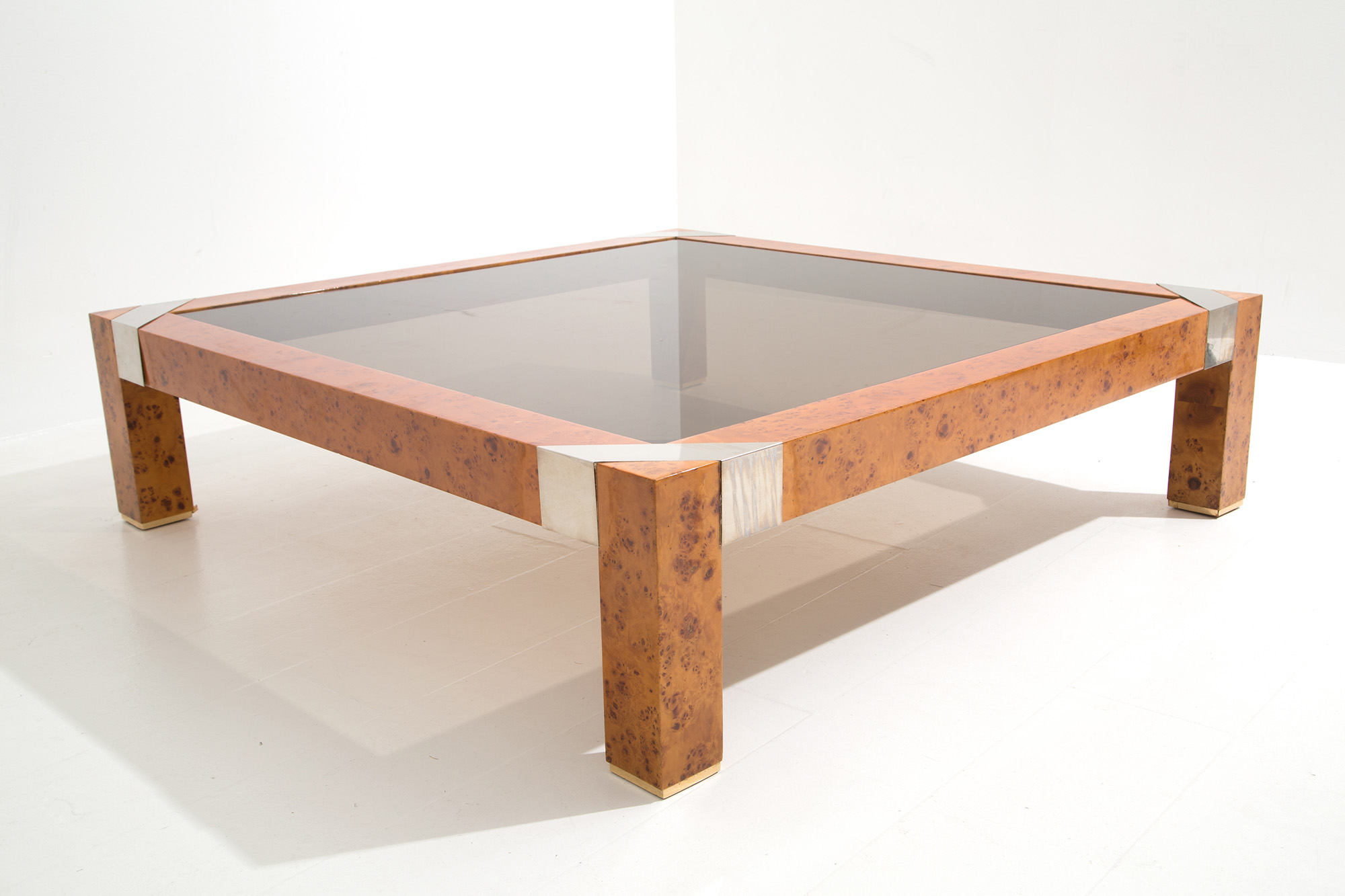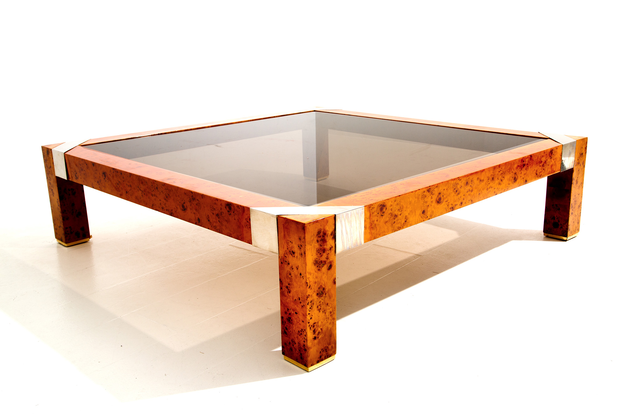 Tavolino in radica di noce collezione Privilege (Casa Vogue). Produzione TURRI. Anni '70. Mis. Lung. cm. 13 Alt. cm. 35 Prof. cm. 130 ca.
