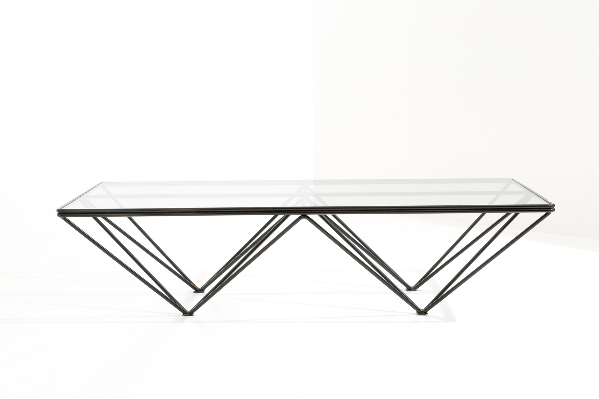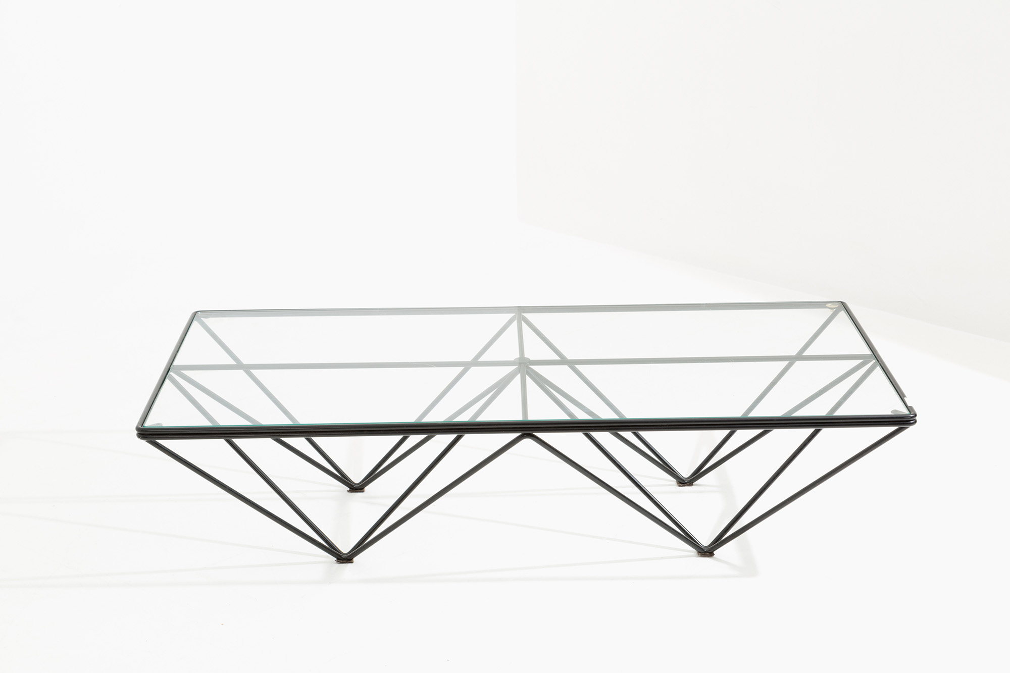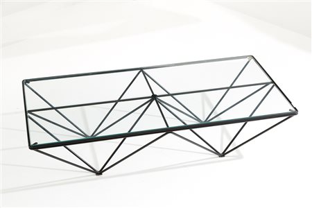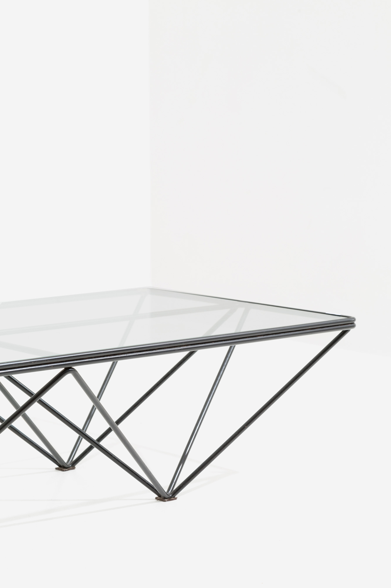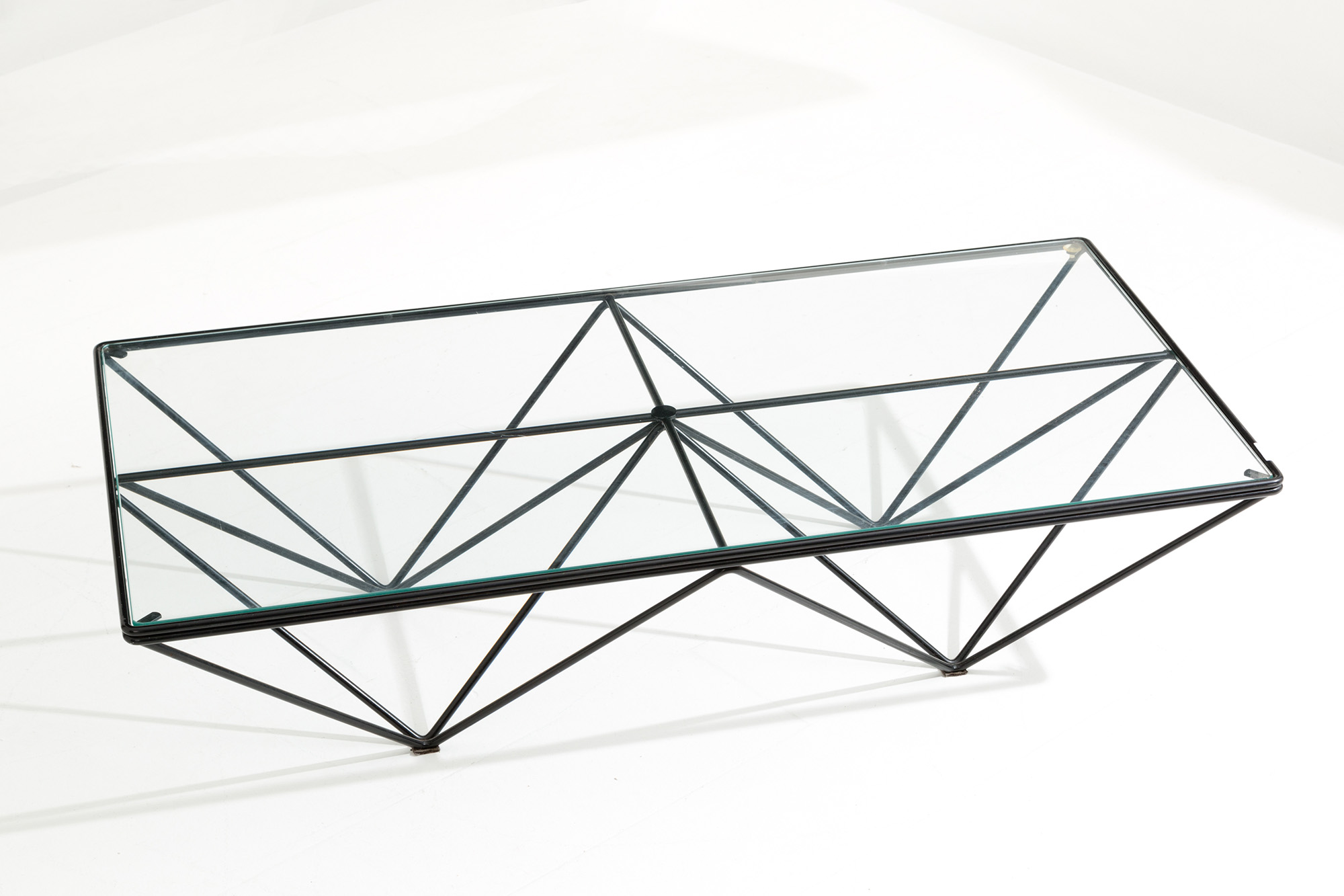 PAOLO PIVA per B&B ITALIA. Tavolino Alanda in metallo verniciato nero con piano in vetro. 1984. Mis. Lung. cm. 120 Alt. cm. 30 Prof. cm. 60 ca.
