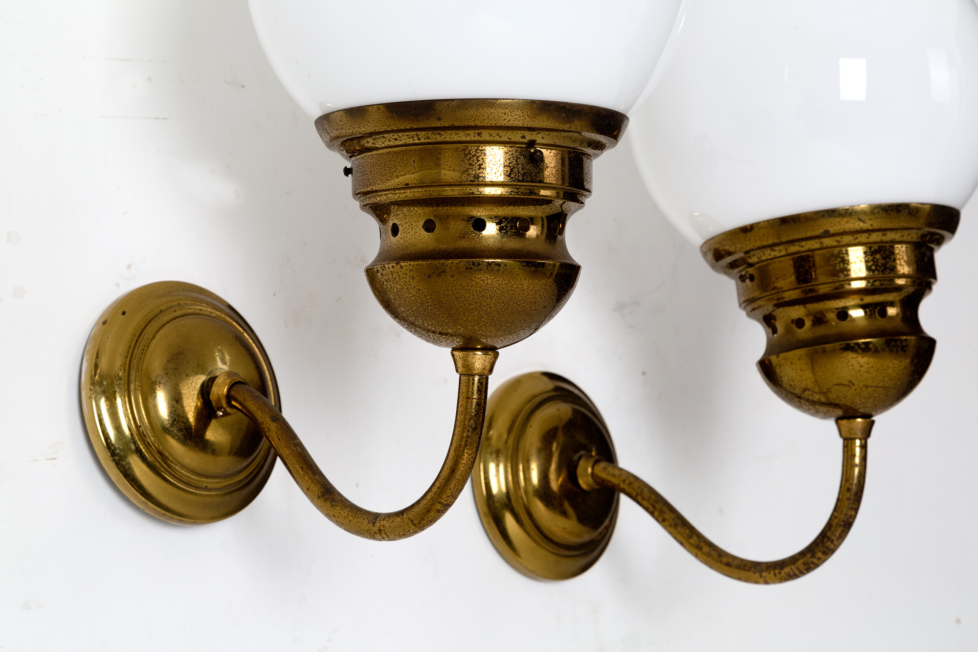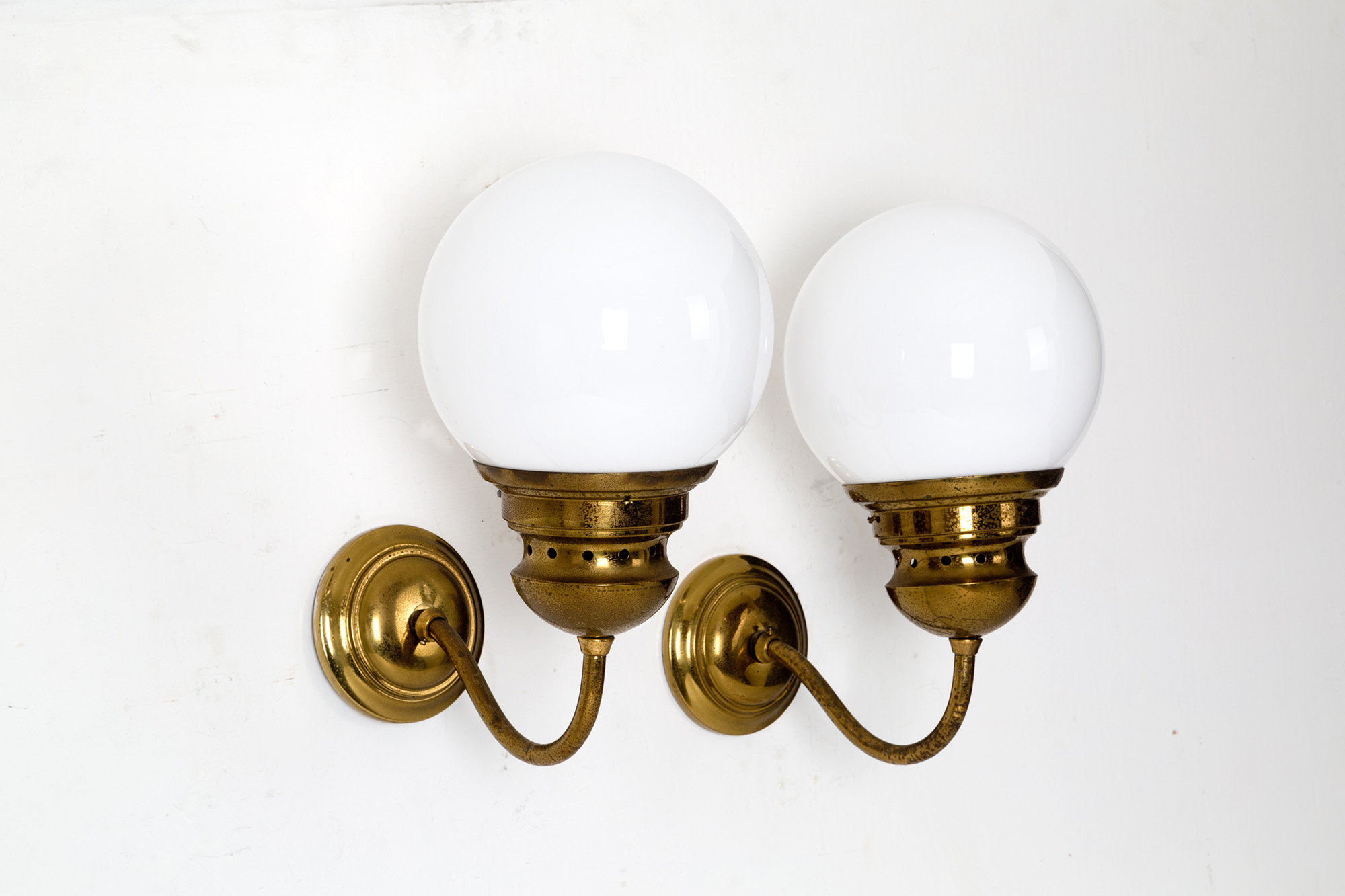LUIGI CACCIA DOMINIONI (Milano, 1913-2016) per AZUCENZA. Coppia di applique mod. LP1 con struttura in ottone. Anni '50. Mis. Alt. cm. 35 Prof. cm. 29 ca.