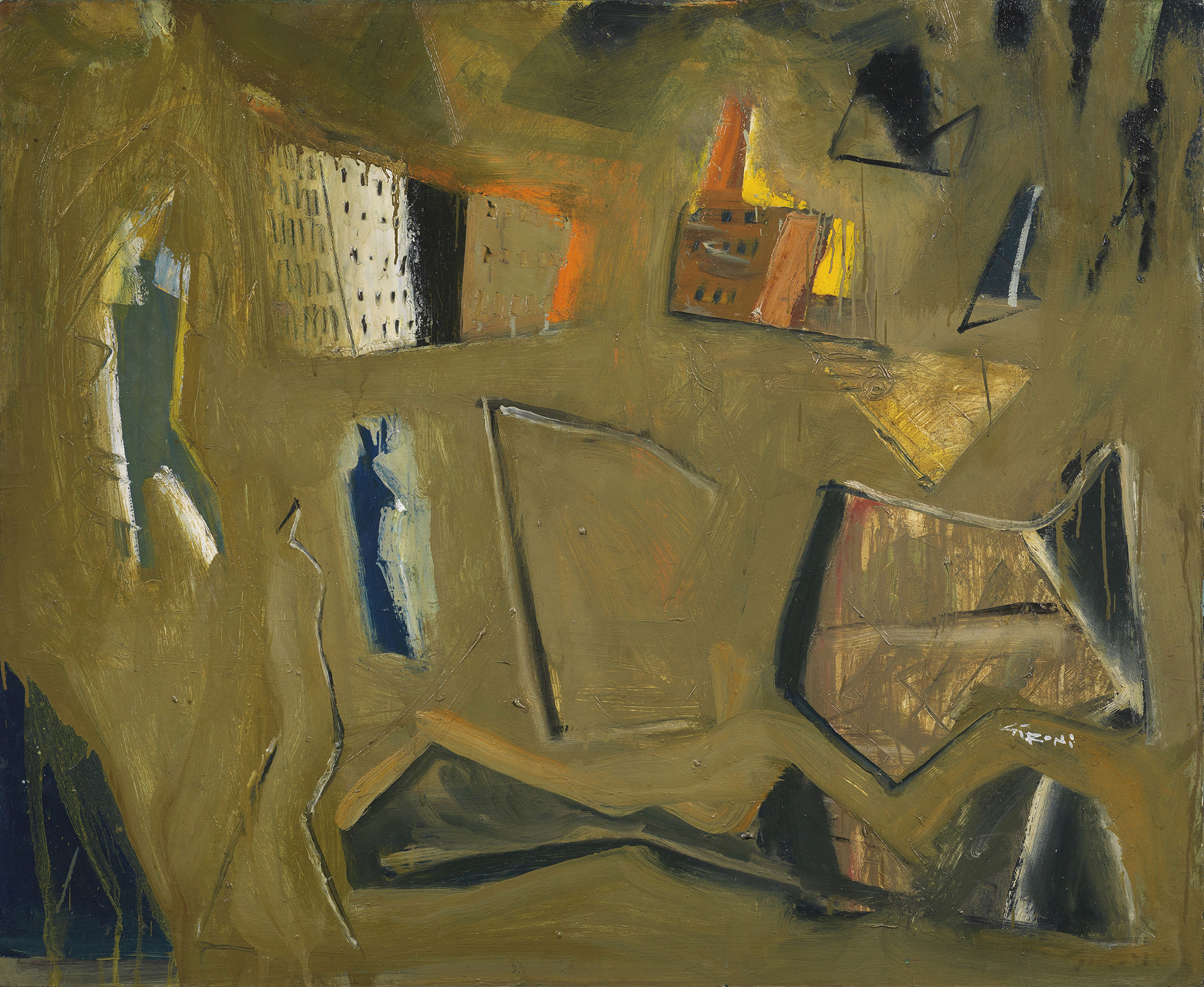 MARIO SIRONI, COMPOSIZIONE OCRA, 1955-57