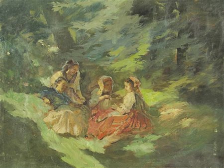 Firma illeggibile (inizio XX secolo) In campagna Olio su tela Misure 60x80 cm