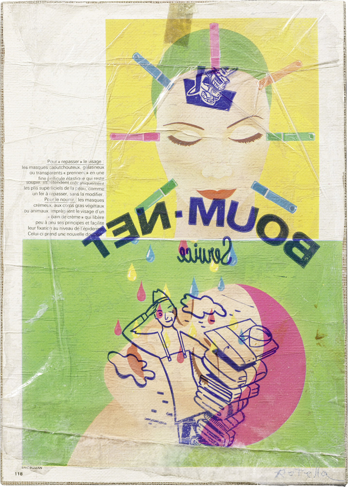 Firma in basso a destra: Rotella; scritta, titolo, data e firma al verso sulla tela: (Collage) / "Boum-Net" / '74 / Rotella.