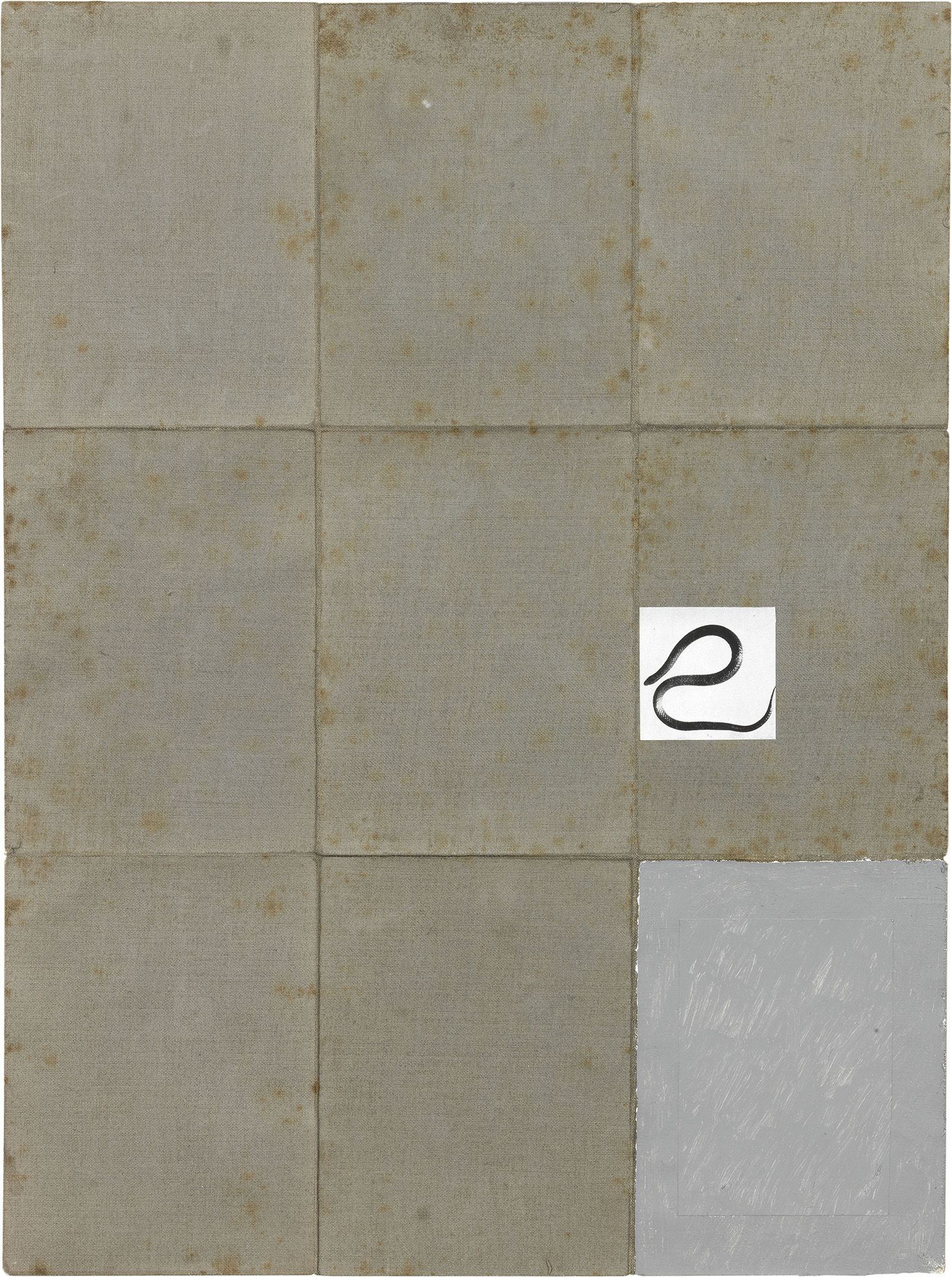 Collage e pittura su lino ripiegato e applicato su carta