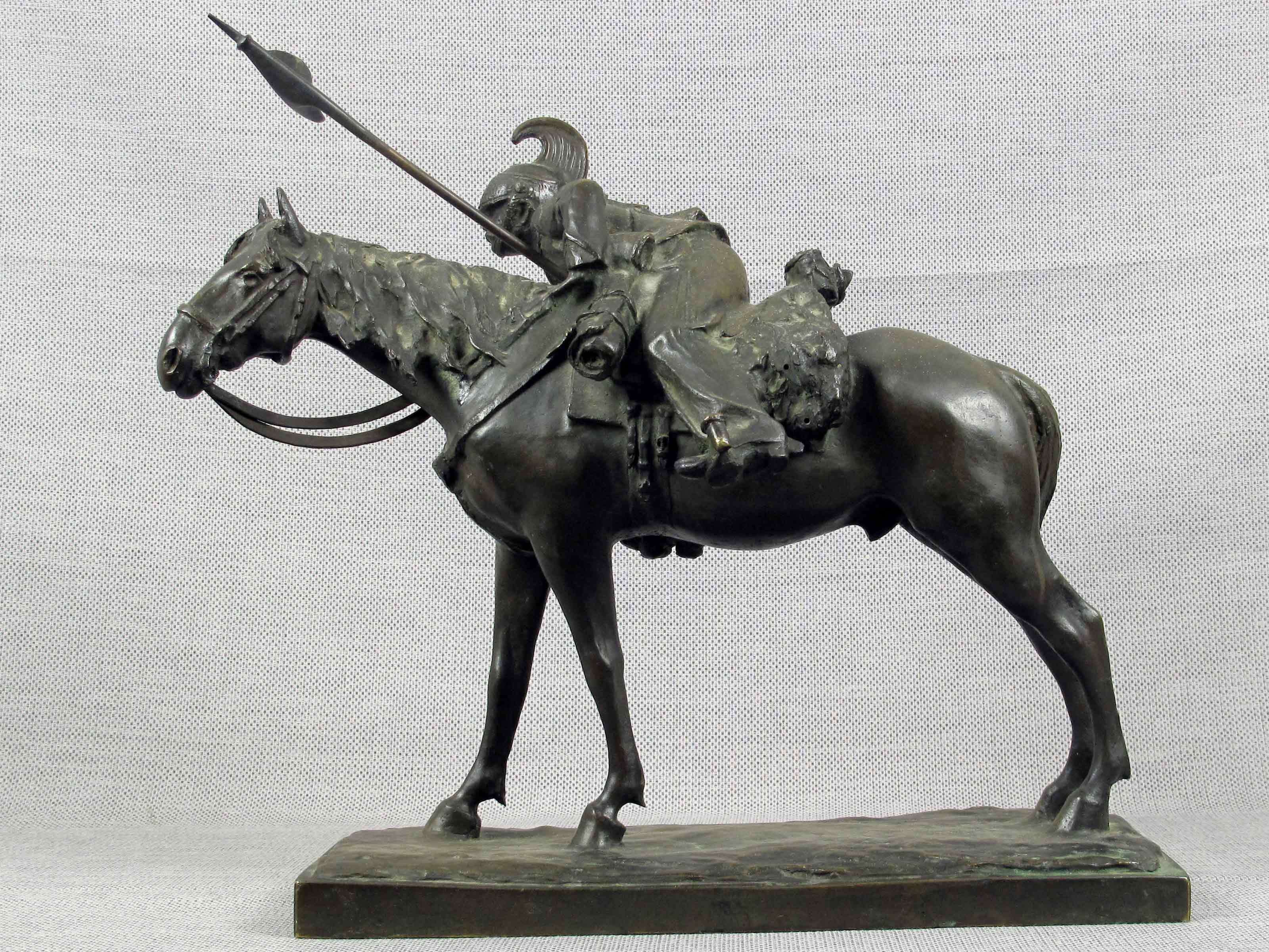 Francesco Ferrucio Crespi (Busto Arsizio 1861-1891) Lanciere a cavallo Bronzo Firmato Base 44x17,5 cm