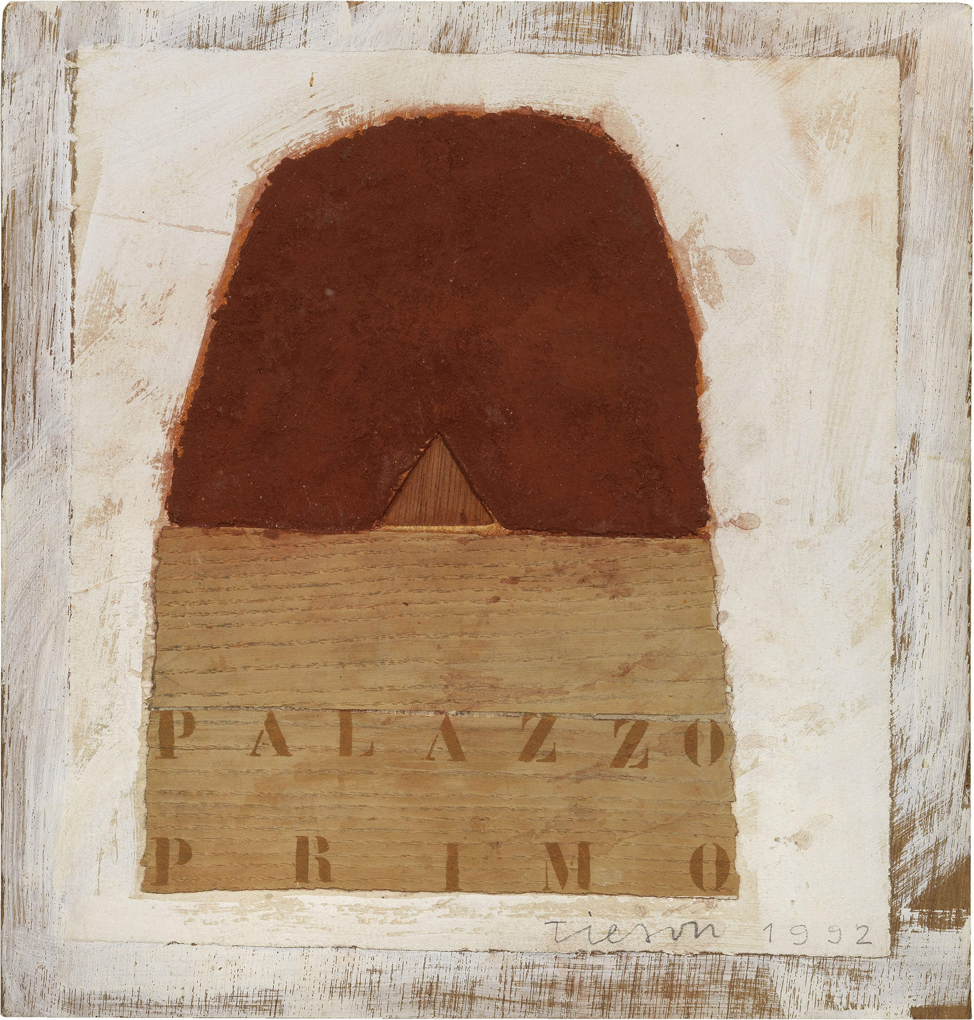 Firma e data in basso a destra: Tilson 1992; titolo, luogo, firma e data al verso: "Le crete senesi / Palazzo Primo" / Casa [...] - Toscana / Tilson 1992.