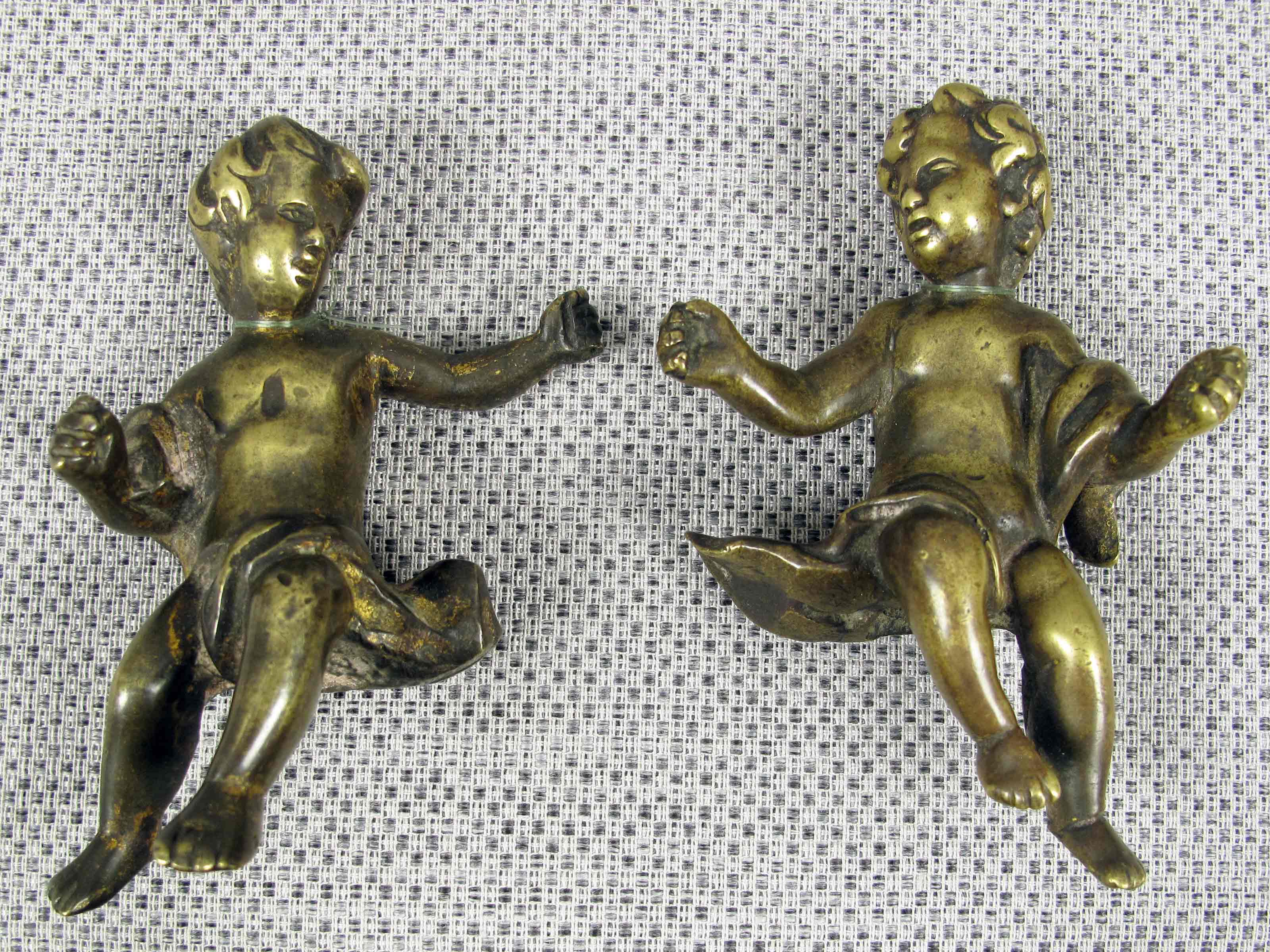 Scuola lombarda (XVIII secolo) Coppia di puttini Bronzo Alti 11,5 cm