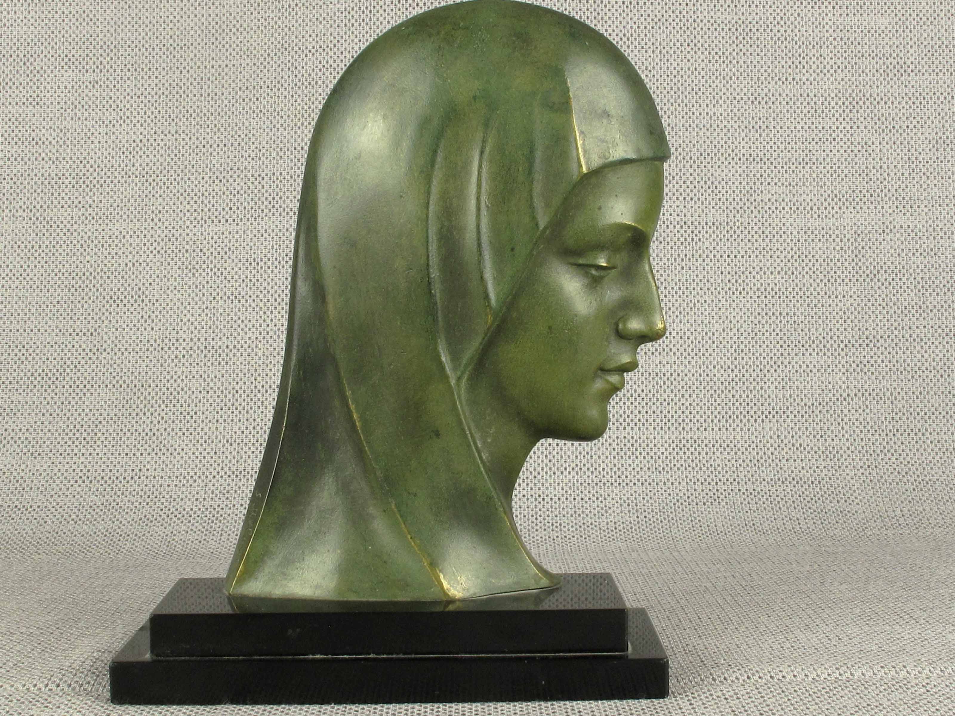 Salvatore Mélani (1902-1934) Profilo di Madonna Bronzo Firmato Base in marmo Alta 22,5 cm