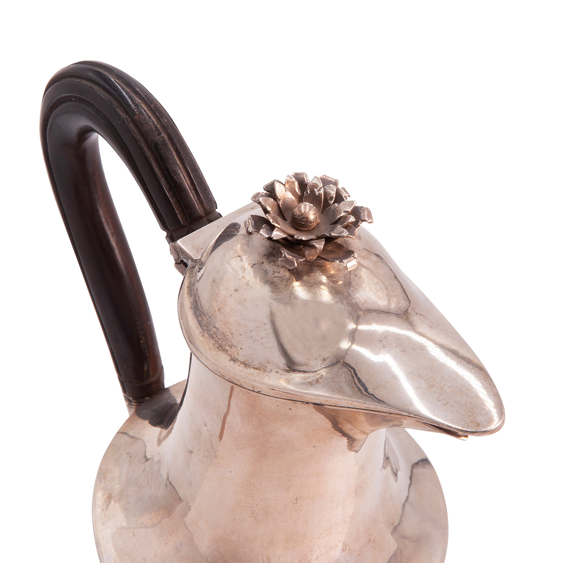 Caraffa in argento, Germania fine del XVIII secolo Peso complessivo gr. 470, 23x16x8 cm.