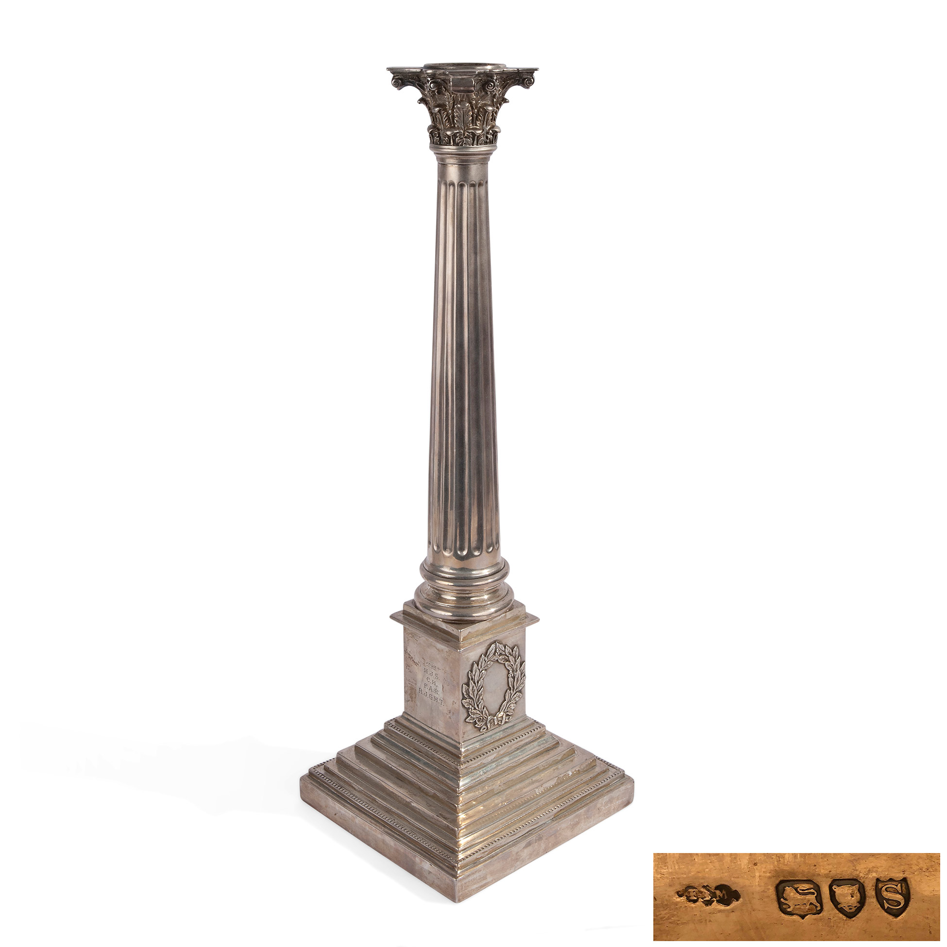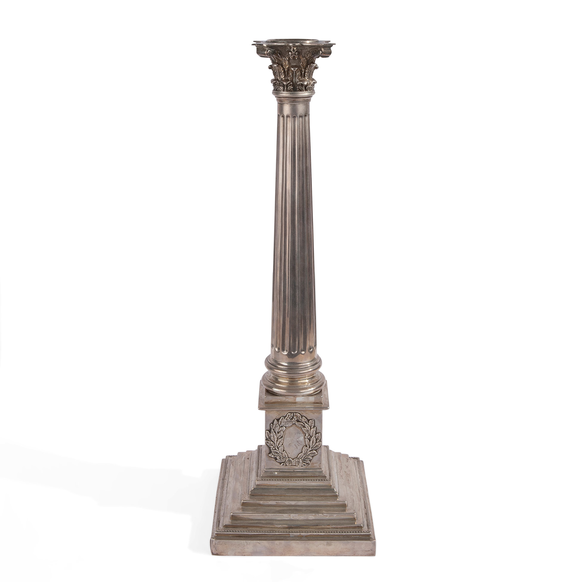 Modello di lampada a colonna in argento Con capitello corinzio, Londra periodo vittoriano Dimensioni 13x37x24 cm.