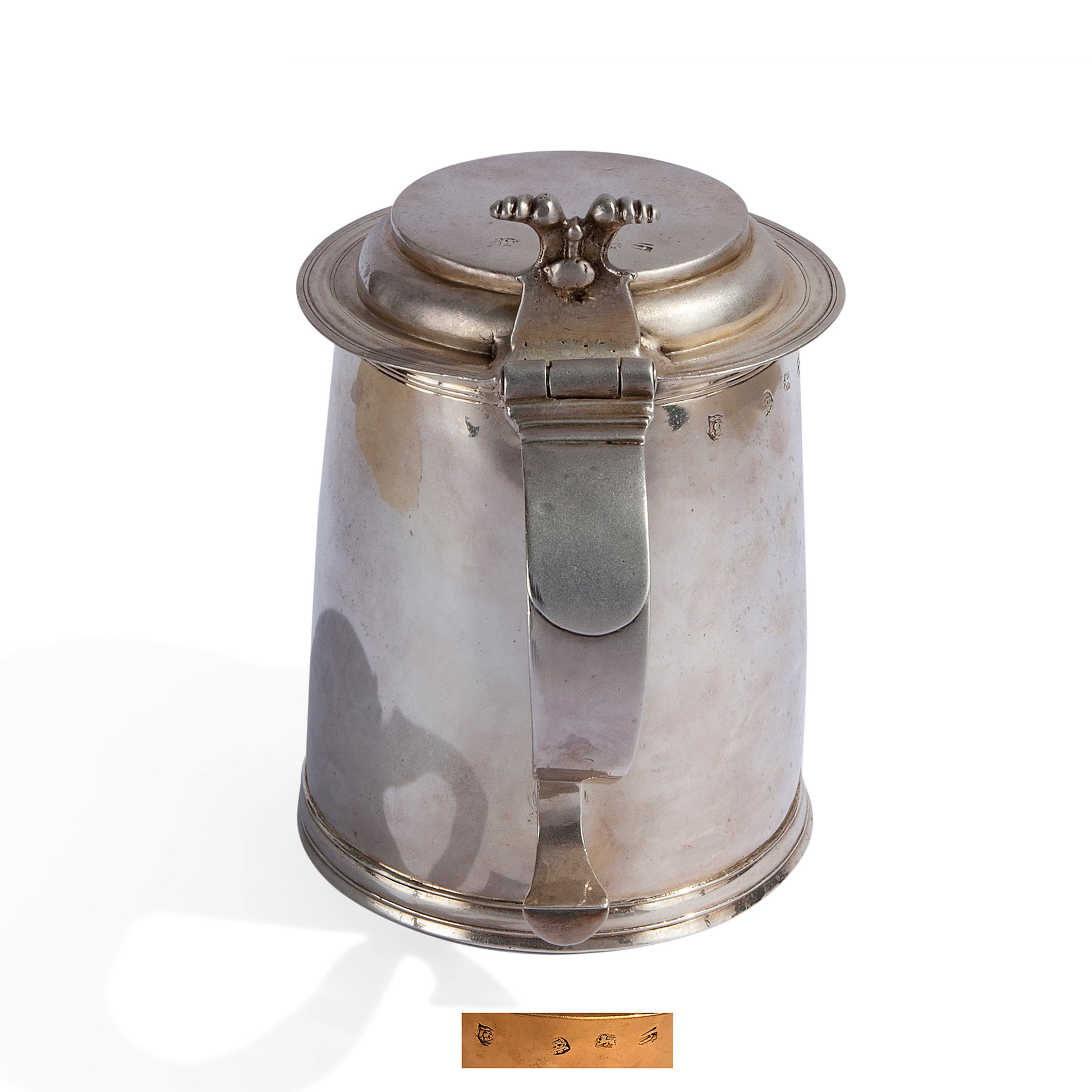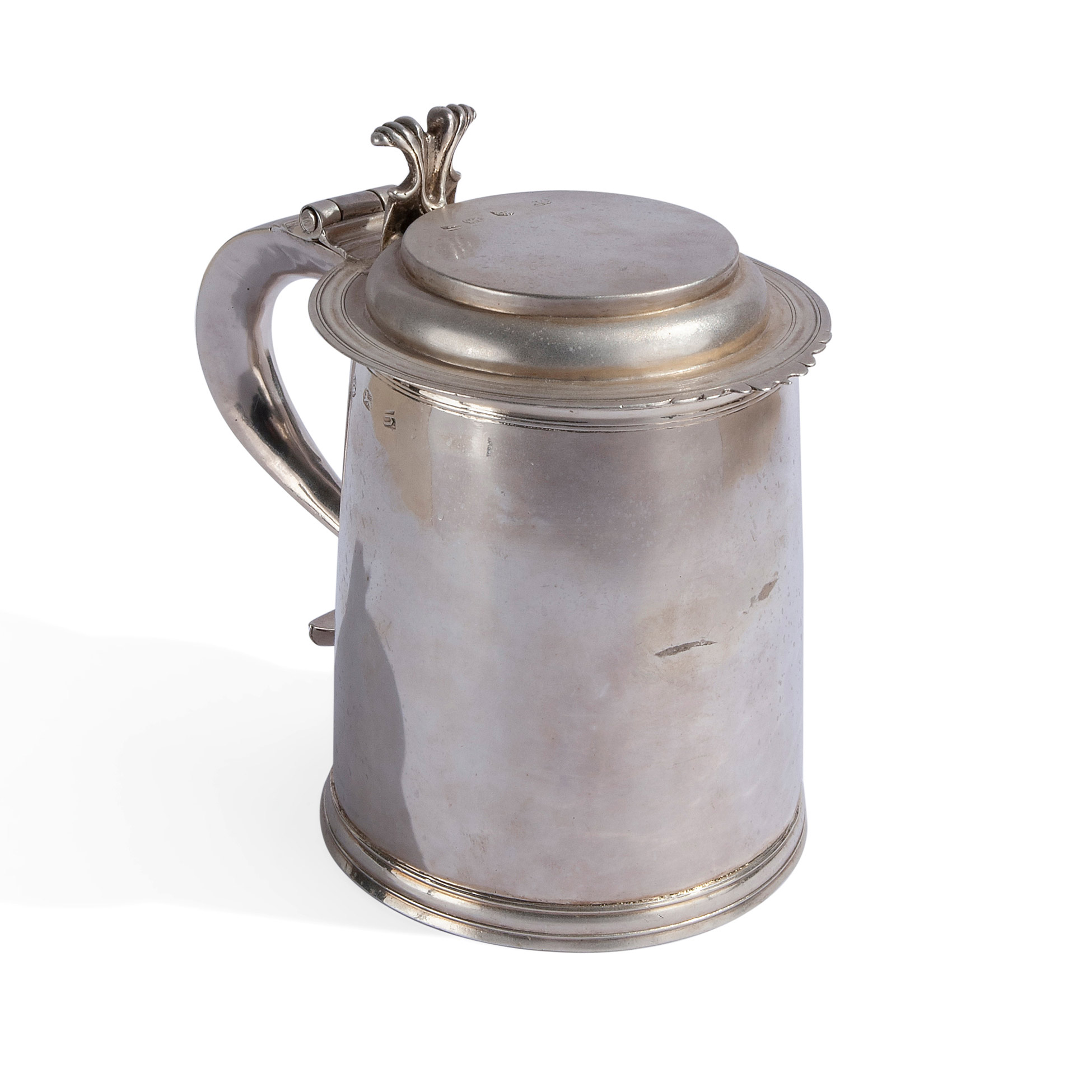 Flat top Tankard, Londra 1679 Peso complessivo gr. 583, 17,5x18,5x12 cm.