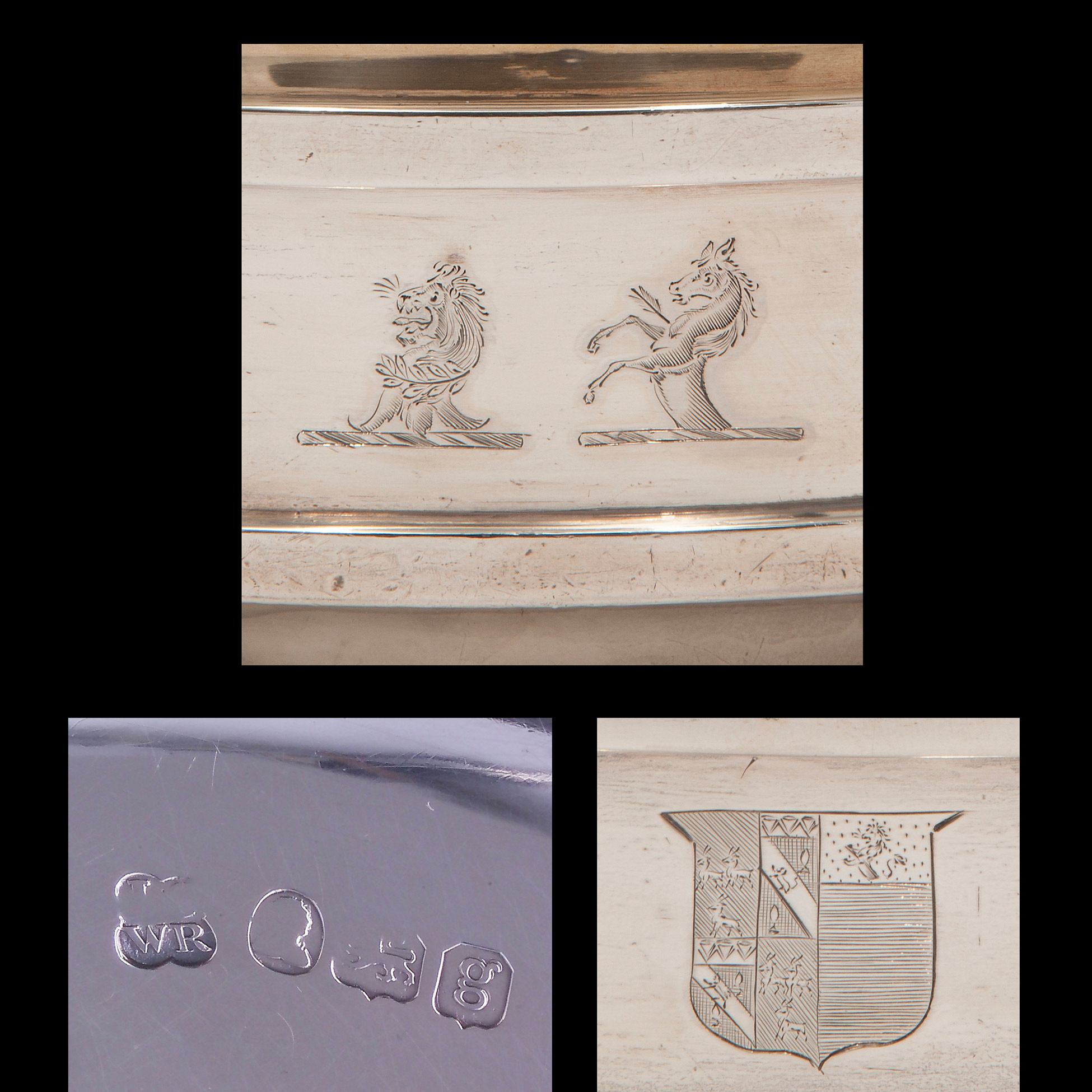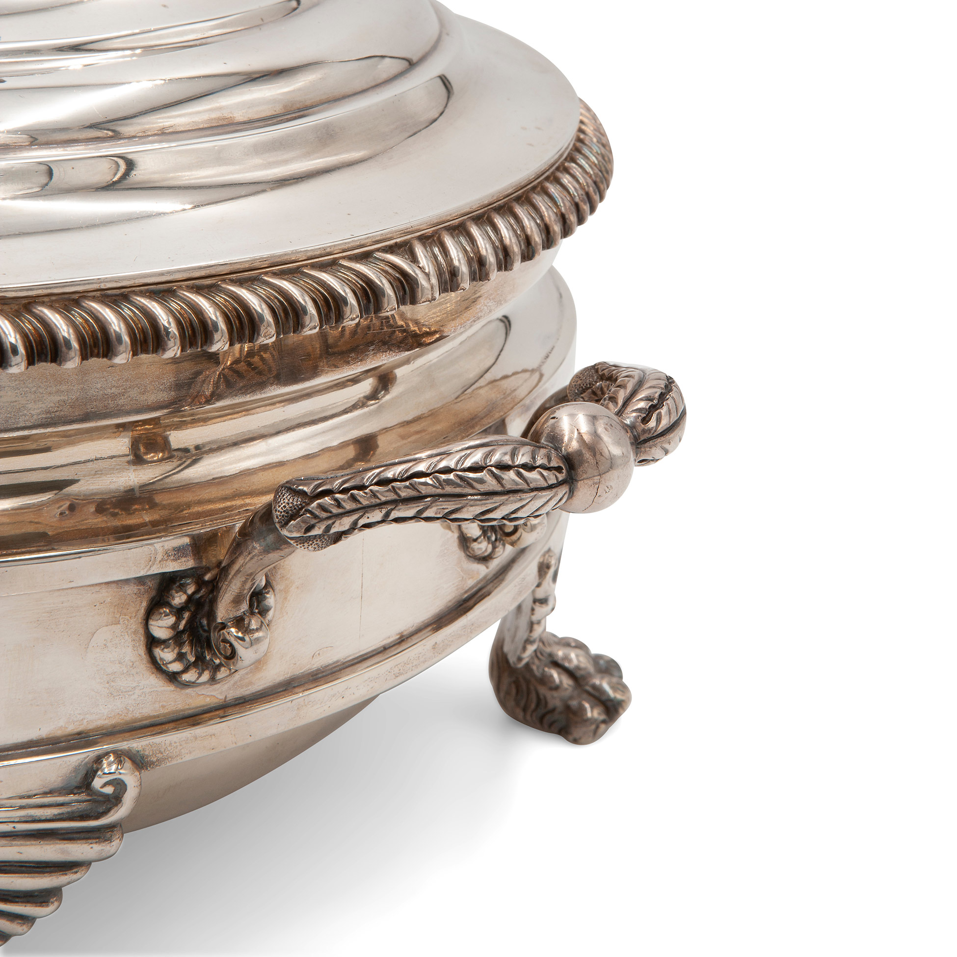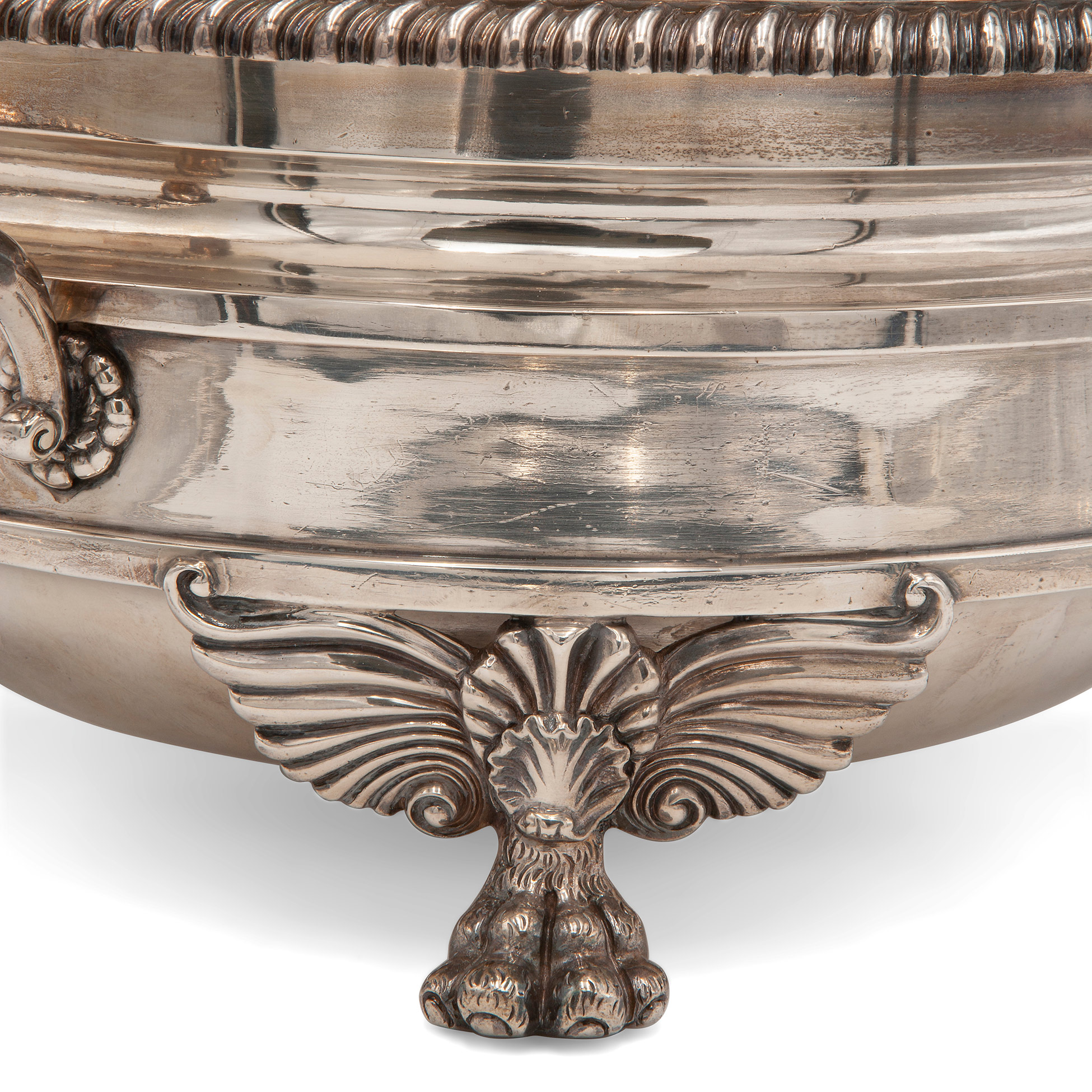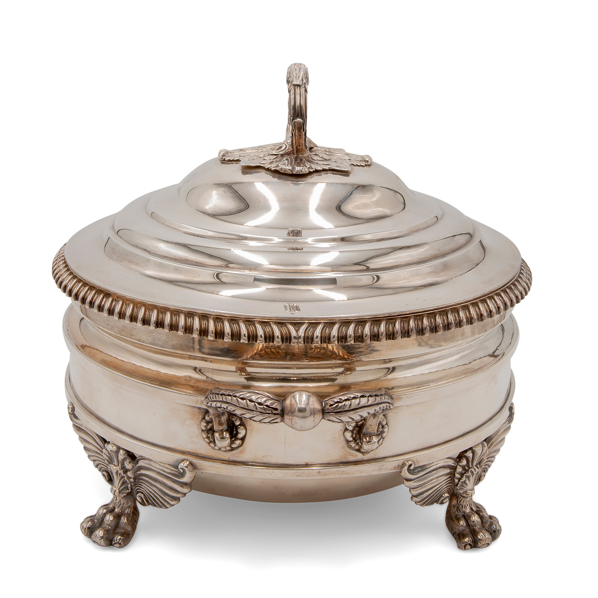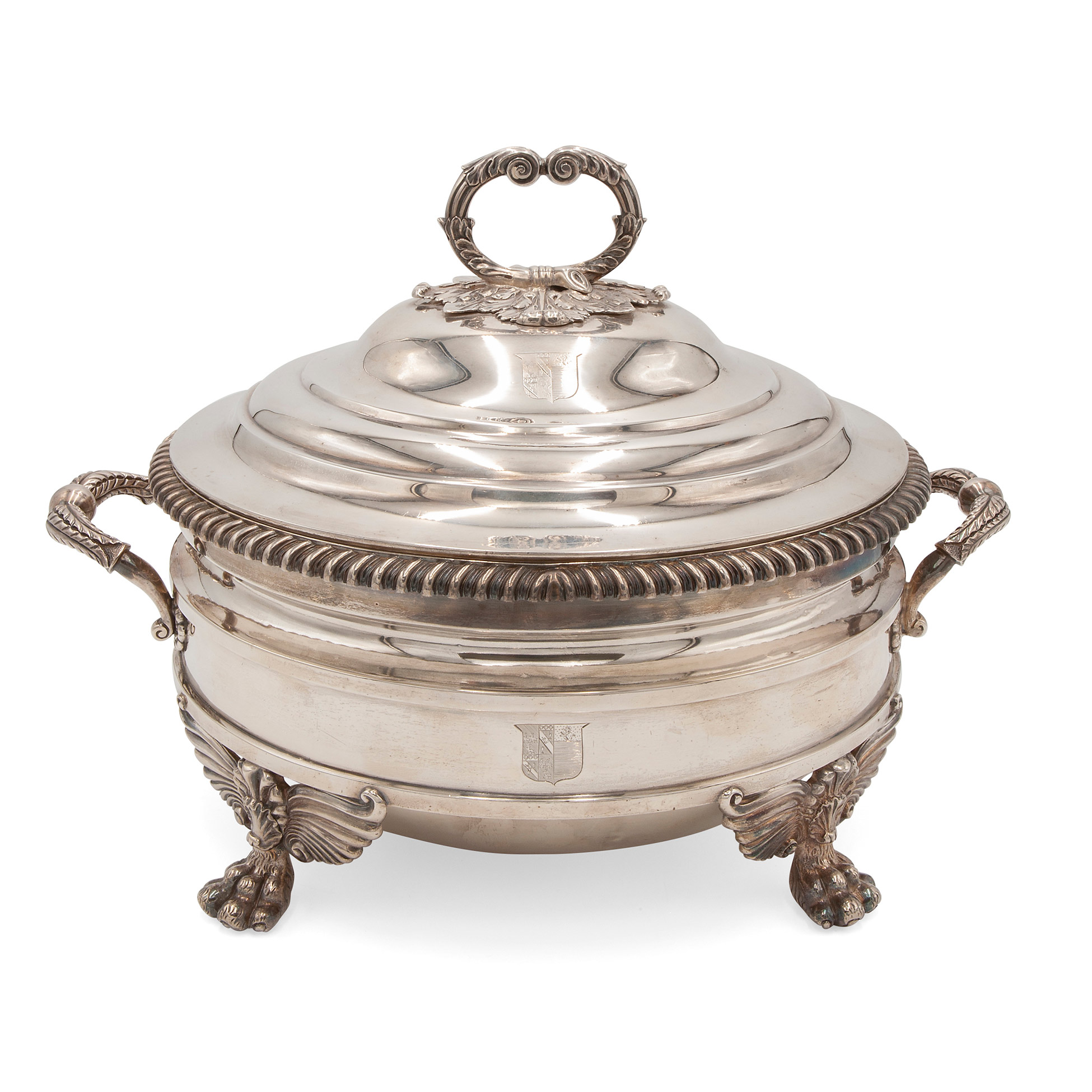 Zuppiera in argento, Londra 1802 Maestri argentieri Joseph Craddock e William Reid Peso complessivo gr. 3726, 27x37x29 cm.