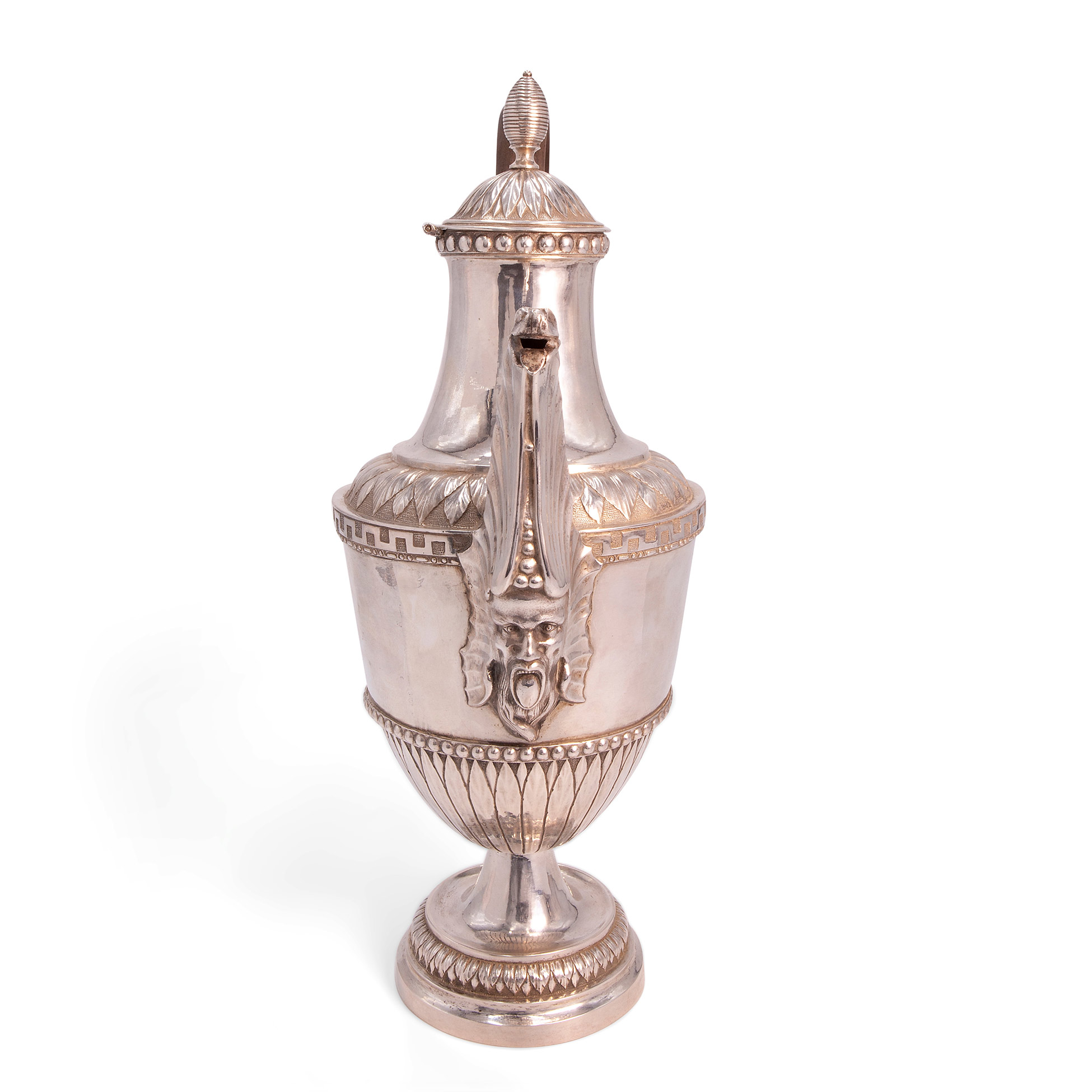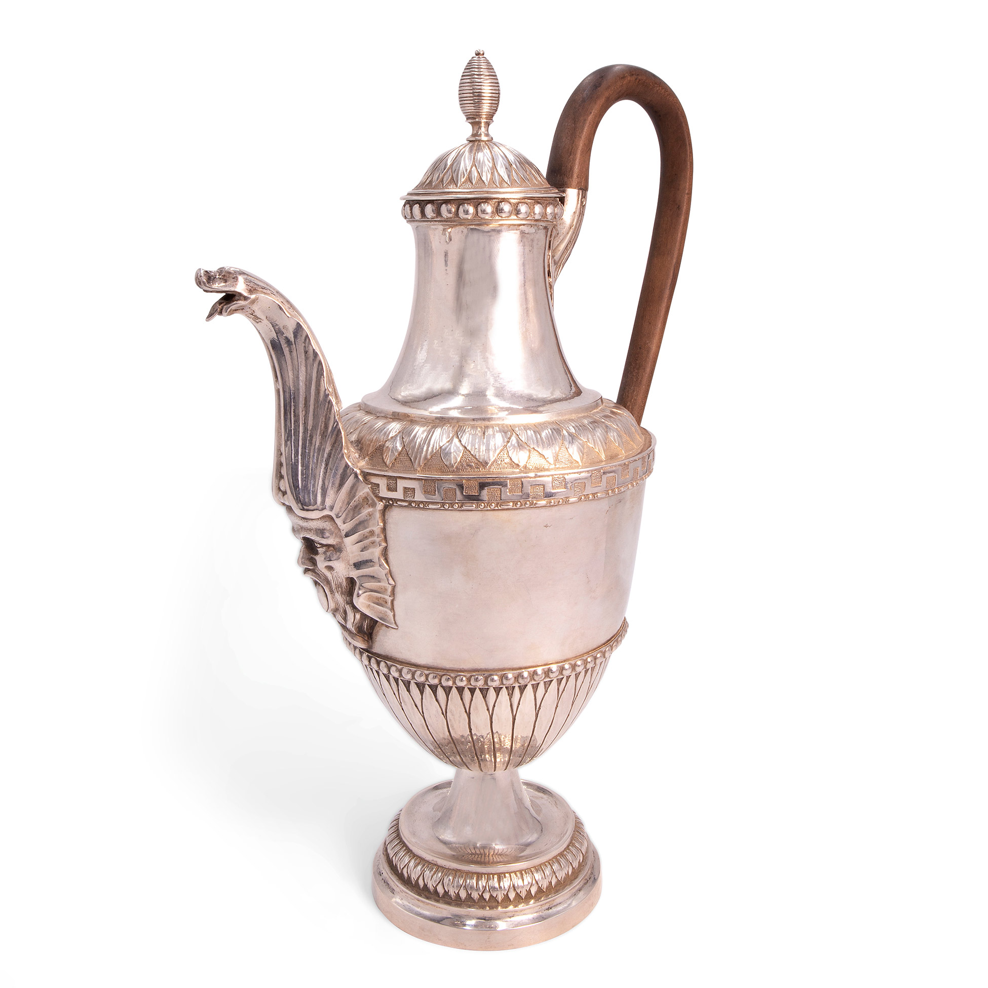 Caffettiera in argento, Bologna seconda metà del XVIII secolo Peso complessivo gr. 910, 32x21x13 cm.