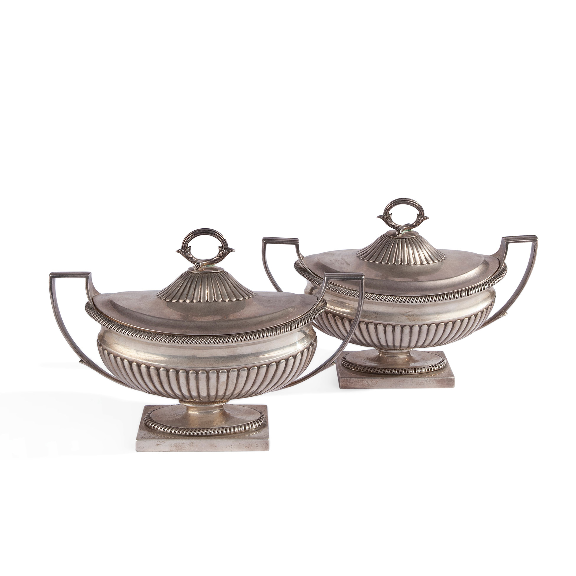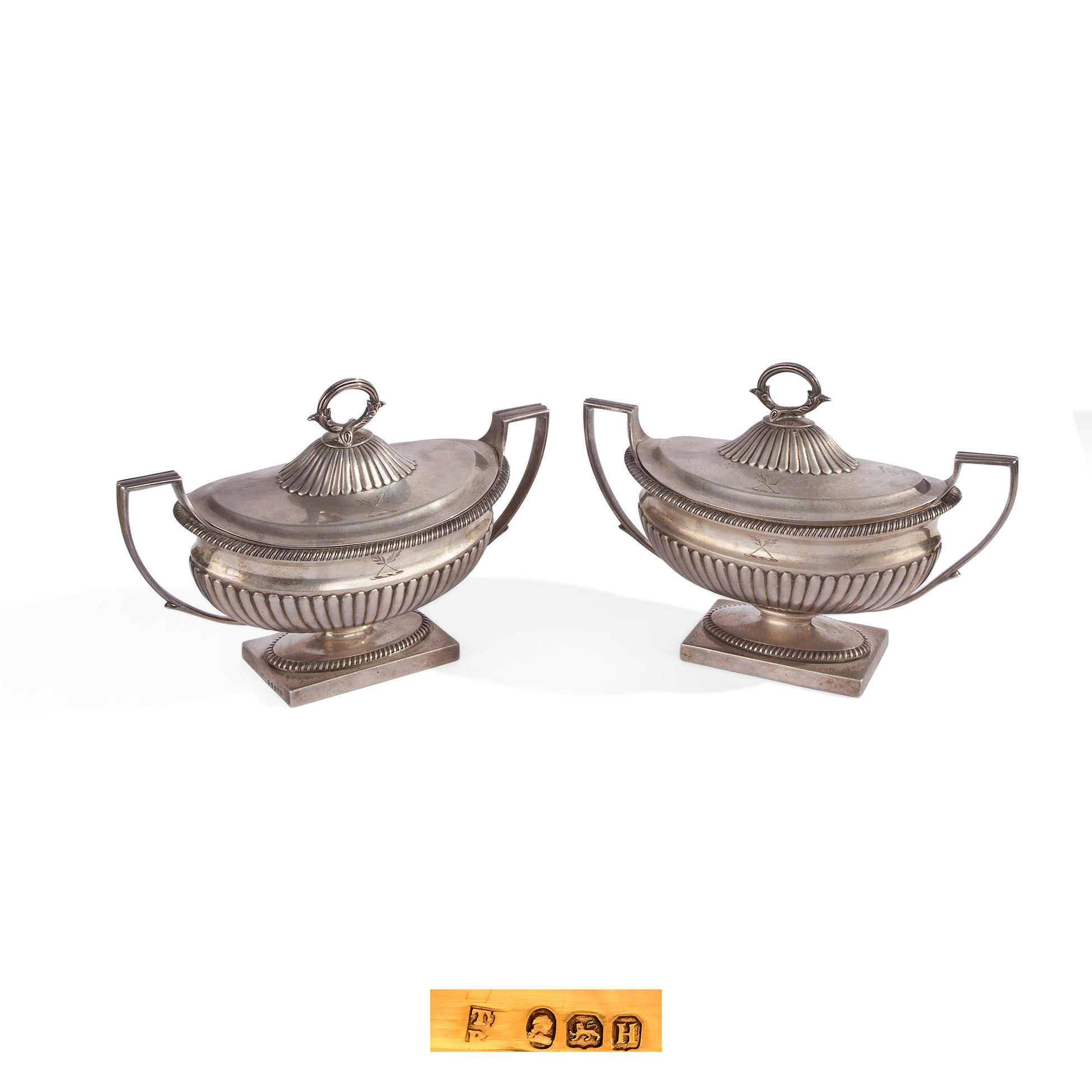 Coppia di salsiere, Londra 1803 Periodo Giorgio III Peso complessivo gr. 1597, 17x23x11,5 cm.