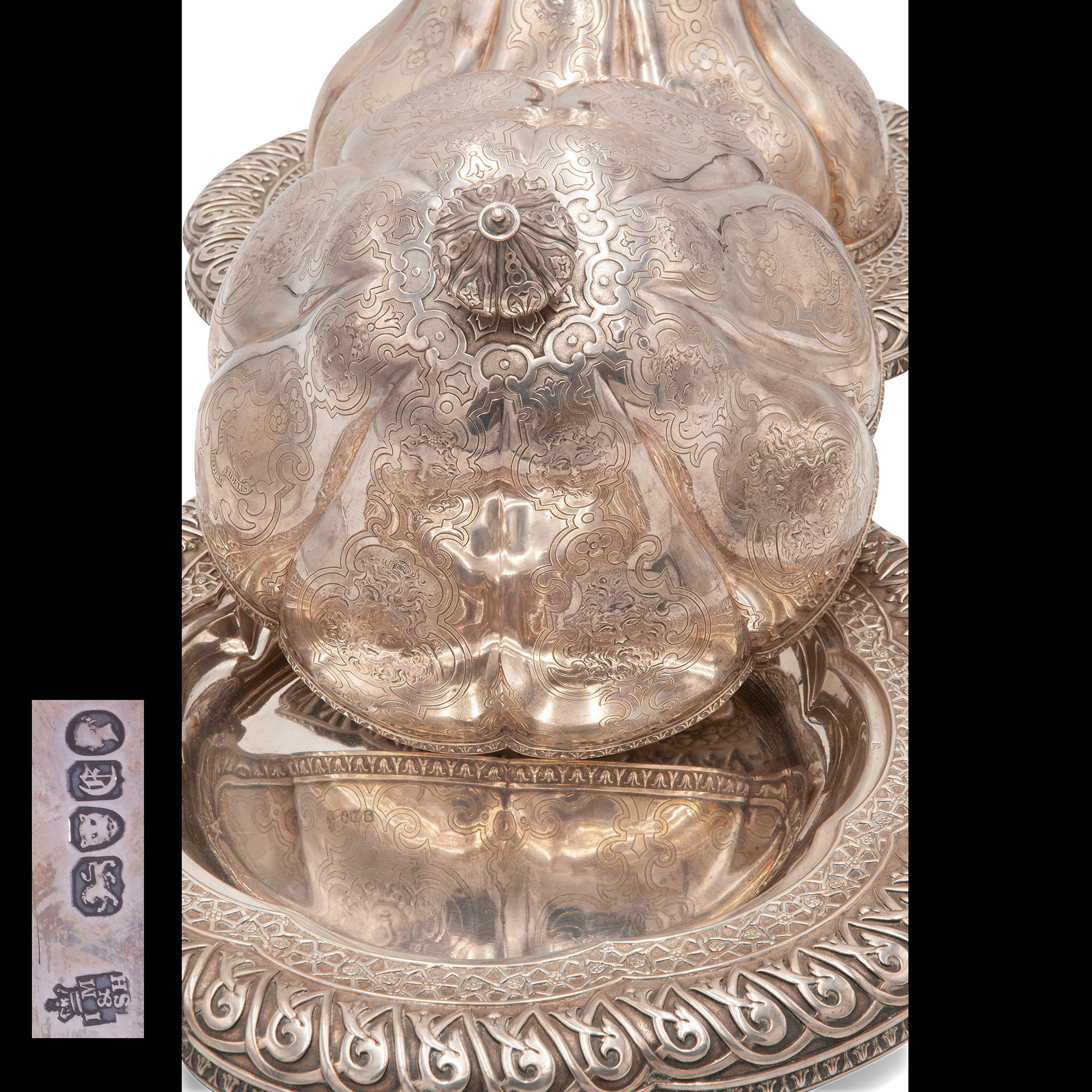 Coppia di di Dish and Cover in argento, Londra 1840 Di forma tonda lobata, con incisioni varie; maestri argentieri Hunt & Roskell, late Storr & Mortimer Peso complessivo gr. 4192, 19x34x34 cm.
