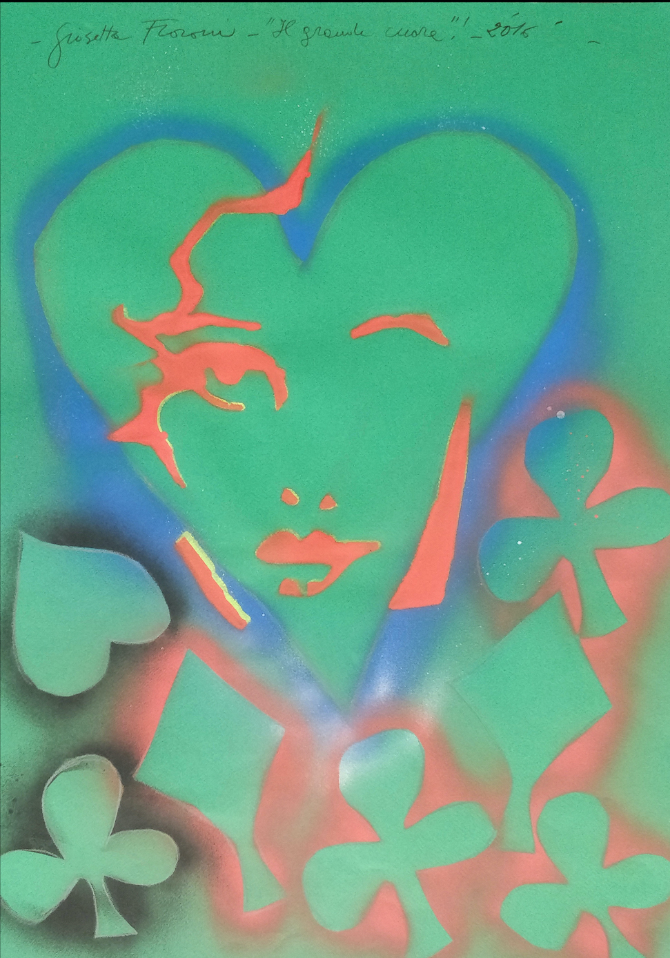 Giosetta Fioroni Tecnica mista su carta 70x50 Il grande cuore 2016 Autentica dell'artista su foto
