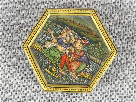 Scatolina dipinta (inizio XX secolo) Avorio Misure 6,8x6,8 cm