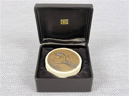 Bruno Cassinari (Piacenza 1912-Milano 1992) Cavallo e volto Multiplo Firmato Diametro 5,9 cm Provvisto di custodia