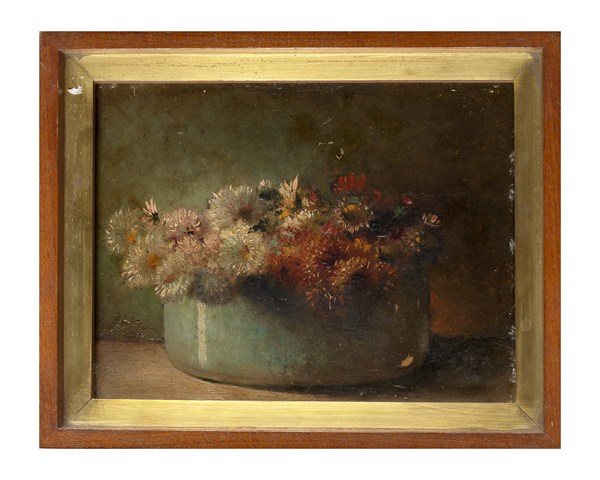 Luigi Scrosati "Vaso di fiori" 1867olio su carta applicata a tela applicata a vetro (cm 17x21)Firmato e datato in