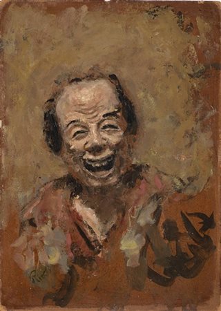 Arturo Rietti "Scultura cinese" olio su cartone (cm 34,5x25) Firmato in basso a