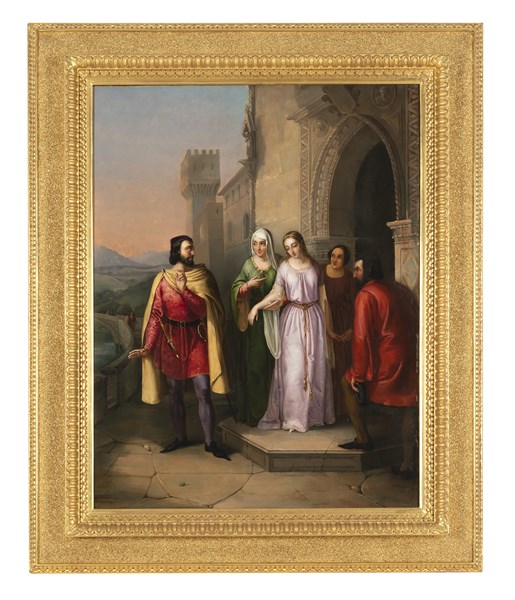 Vincenzo Giacomelli "Incontro" 1843 olio su tela (cm 81x61) Firmato, locato Vene