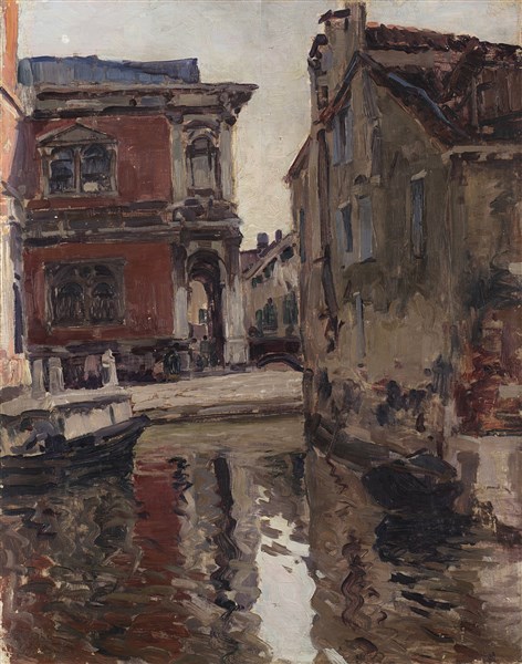 Teodoro Wolf-Ferrari "Venezia, Ponte della Scuola di San Rocco" olio su compens