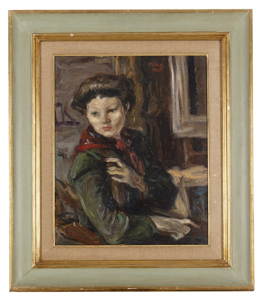 Primo Conti "Annabella nello studio" 1945 olio su tela (cm 50x40) Firmato e data