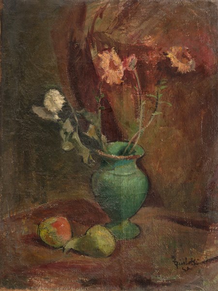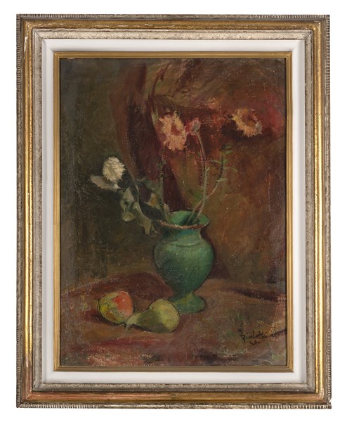 Luciano Ricchetti "Composizione con vaso di fiori" olio su tela (cm 63x46) Firm