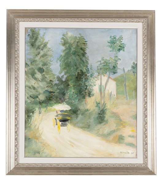 Renato Vernizzi "La carrozza" '35 olio su tela (cm 71x60) Firmato e datato in ba