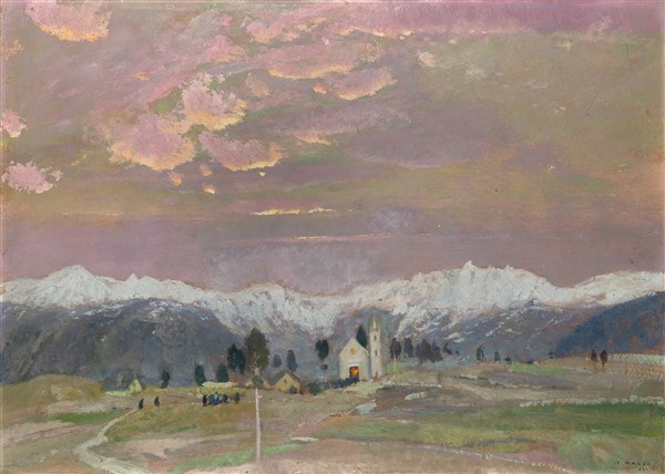 Cesare Maggi "Sauze d'Oulx (Salice d'Ulzio)" 921 olio su cartone pressato (cm 50