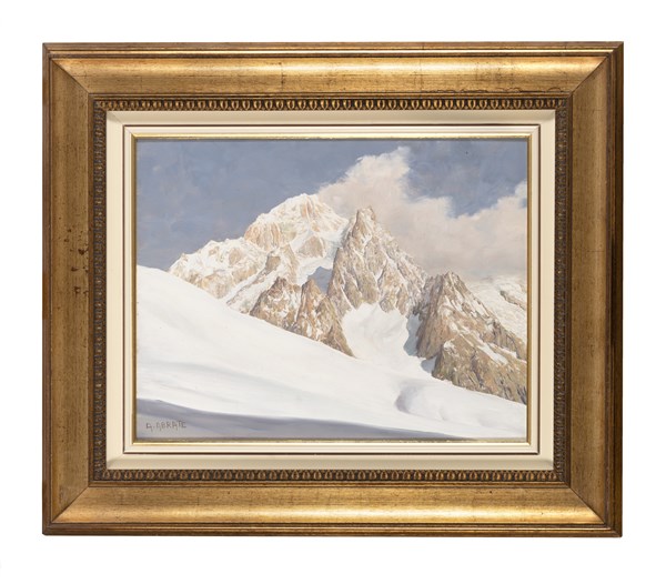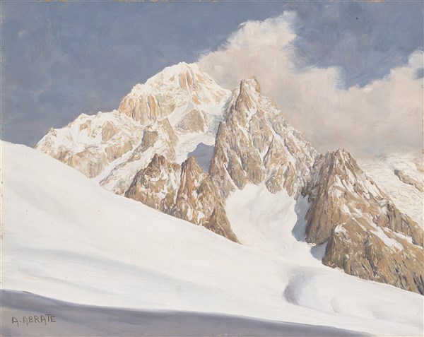 Angelo Abrate "Vento di Ovest sul Monte Bianco" olio su compensato (cm 34x44) F
