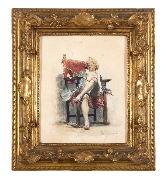 Lot 154 | Giacomo Favretto "Figura neo settecentesca" acquerello su carta (cm 28x23) Firm