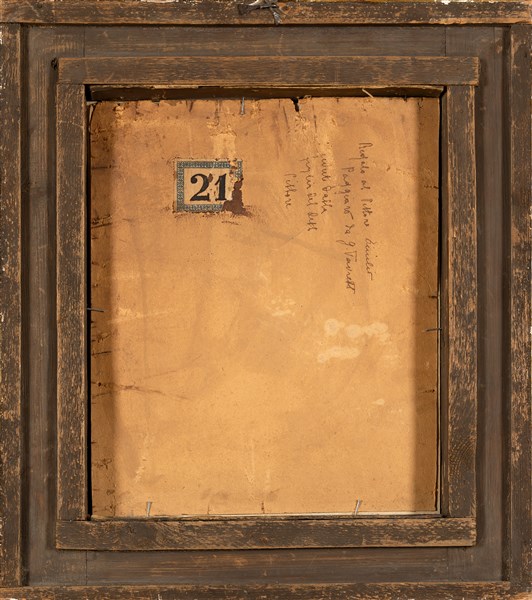Al retro: dedica autografa "regalo al pittore Emilio Paggiaro da G. Favretto"
