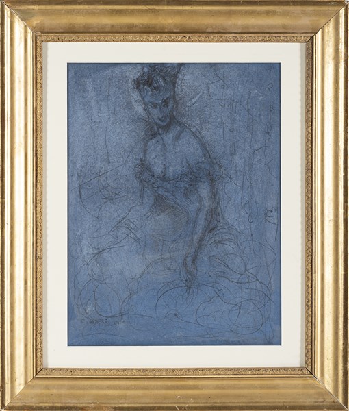 disegno a matita su carta azzurra applicata a cartoncino (cm 41x29)