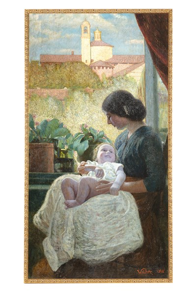 Ferdinando Villa "Maternità" 1916 olio su tela (cm 154x80) Firmato e datato in b