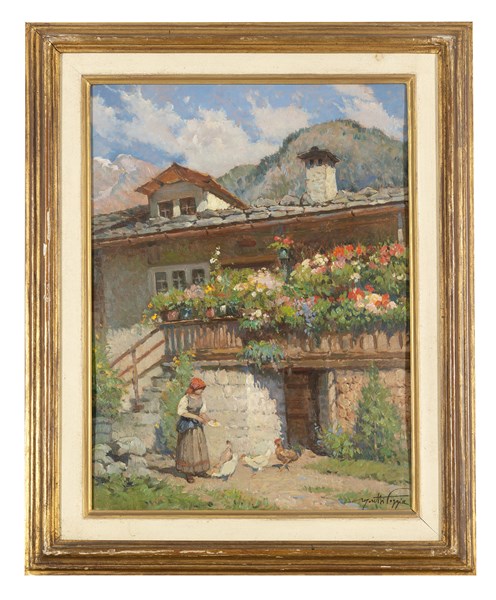 Mario Moretti Foggia "Baita fiorita" olio su tavola (cm 45x33) Firmato in basso