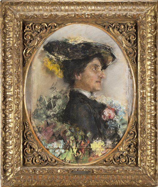 Antonio Mancini "Ritratto di signora" pastelli colorati su carta applicata a ca