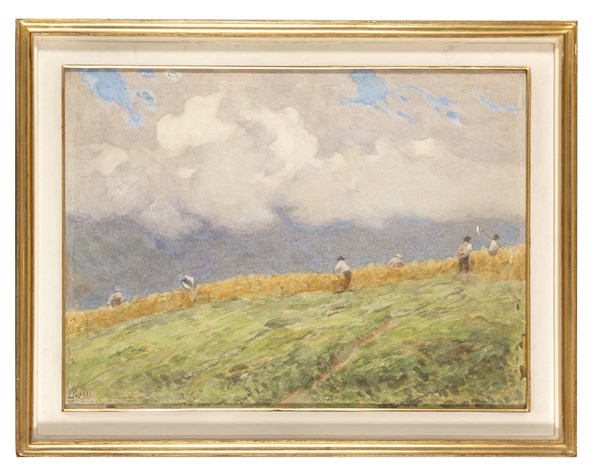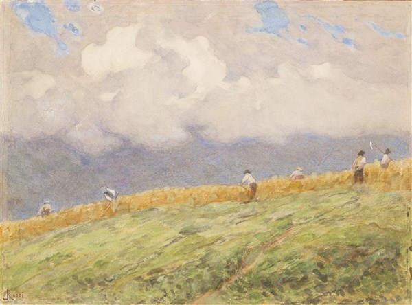 Luigi Rossi "La raccolta" acquerello su carta (cm 38x52) Firmato in basso a sin