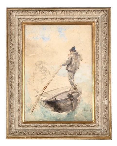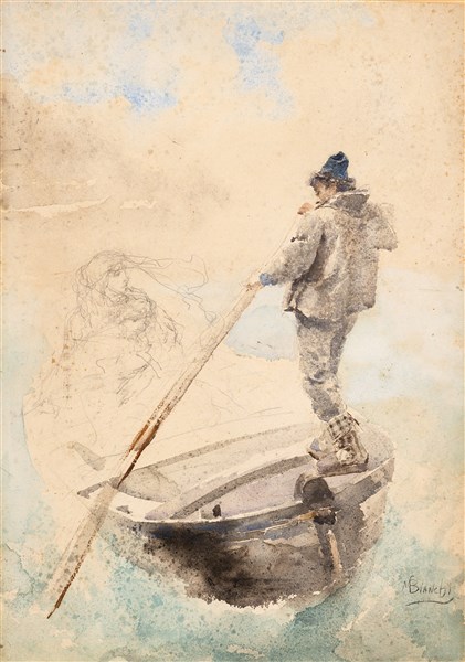 Mosè Bianchi "Studio per "Barca chioggiotta"" tecnica mista su carta (cm 54x36)