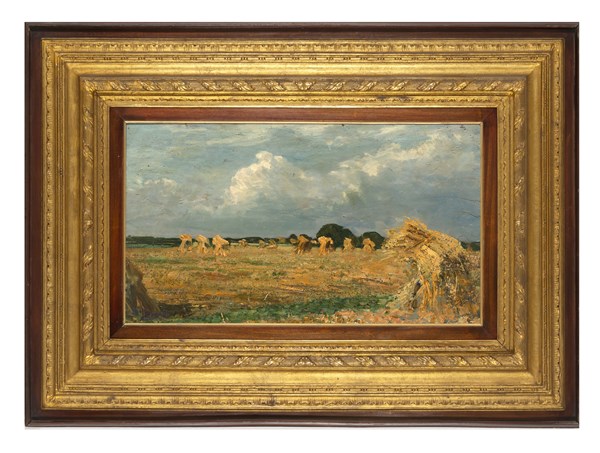 Beppe Ciardi "I covoni a Quinto" 1904 olio su tavola (cm 32x54) Firmato in basso