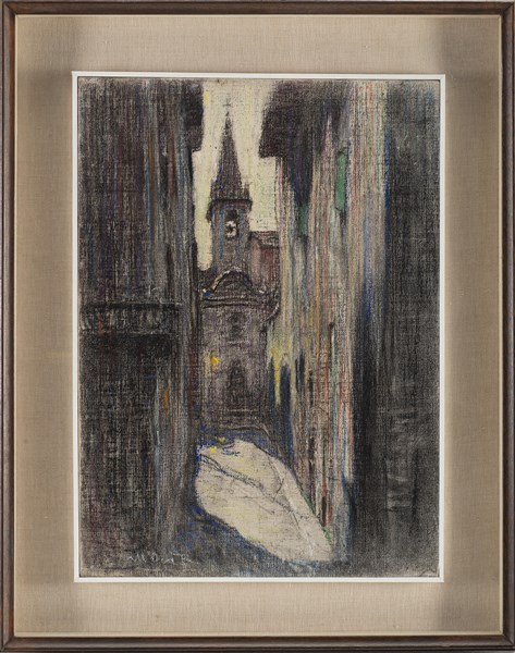 Angelo Dall'Oca Bianca "La Chiesetta di San Matteo, Verona" pastelli colorati s