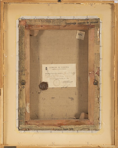 Al retro: cartiglio e timbro a ceralacca della Galleria d'Arte Moderna di Verona firmato dal prof.Antonio Avena