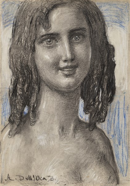 Angelo Dall'Oca Bianca "Testa" pastelli colorati su carta applicata a cartone (