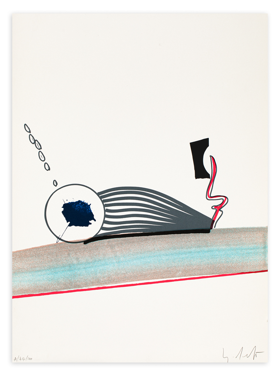 Firma, timbro a secco e numerazione (Esemplare 47/100) al fronte di ciascuna