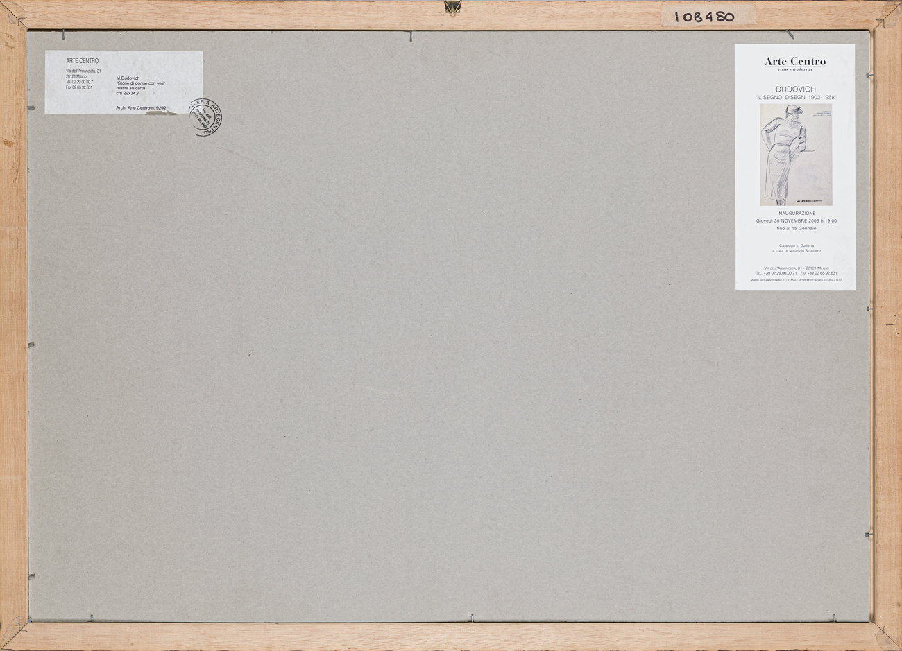 Etichetta e timbro della Galleria Arte Centro (MI) al retro del cartone protettivo